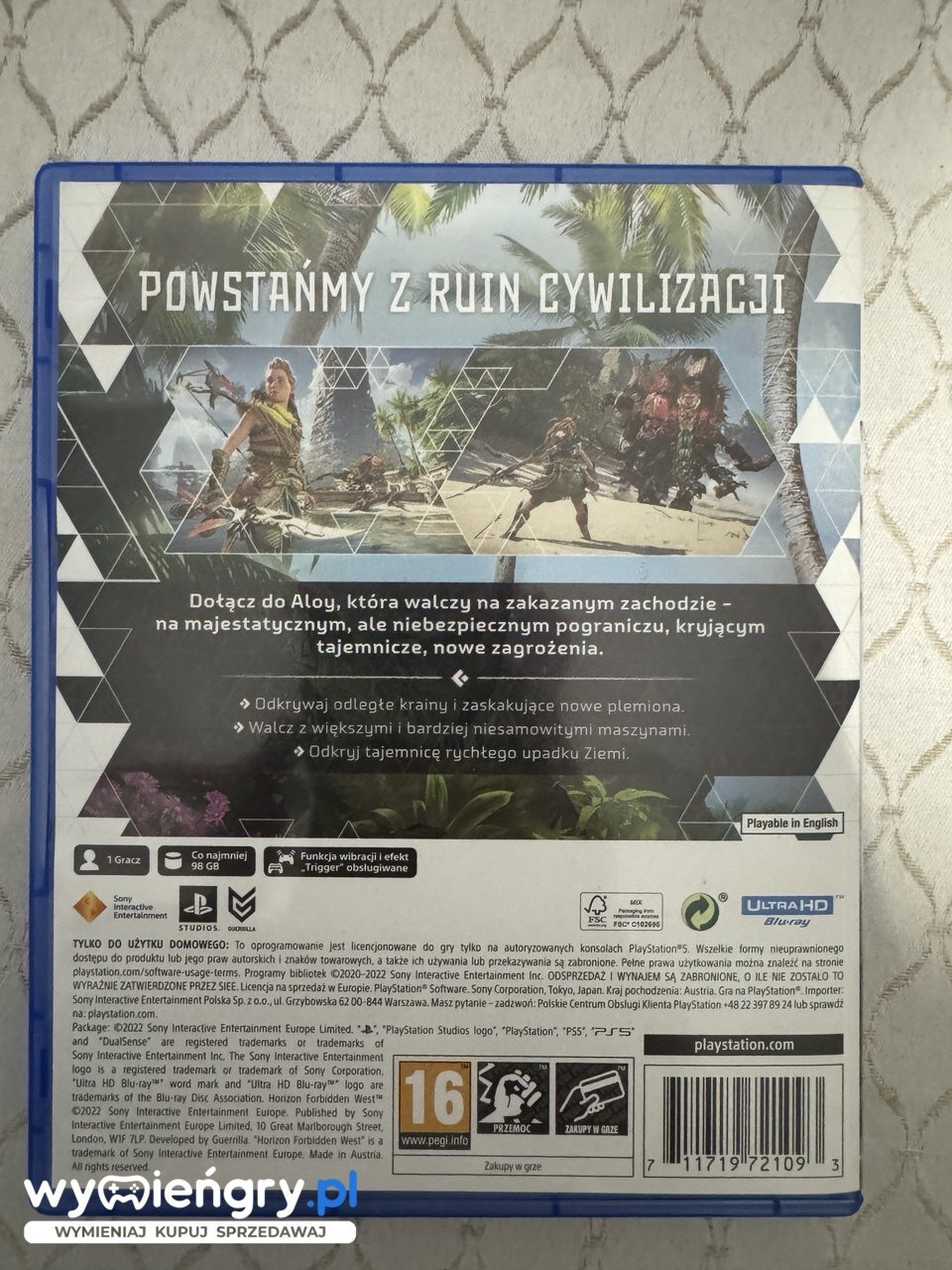 Horizon: Forbidden West to kontynuacji niesamowitego przeboju Horizon: Zero Dawn, który w 2017 roku zdobył status bestsellera. Wyrusz w niezwykłą podróż przez zakazany Zachód, odkrywając zapierający dech w piersiach świat Horizon Forbidden West. Wciel się w Aloy, waleczną łowczynię, i zmierz się z mrocznymi tajemnicami, jakie skrywa przyszłość naszej cywilizacji. Pokonuj potężne maszyny, eksploruj dzikie tereny i poznawaj różnorodne plemiona. Odważ się odkryć prawdę, która odmieni losy świata i zapewni przetrwanie ludzkości. Czekają na Ciebie niezapomniane przygody i niezliczone wyzwania w tym niesamowitym, postapokaliptycznym uniwersum.