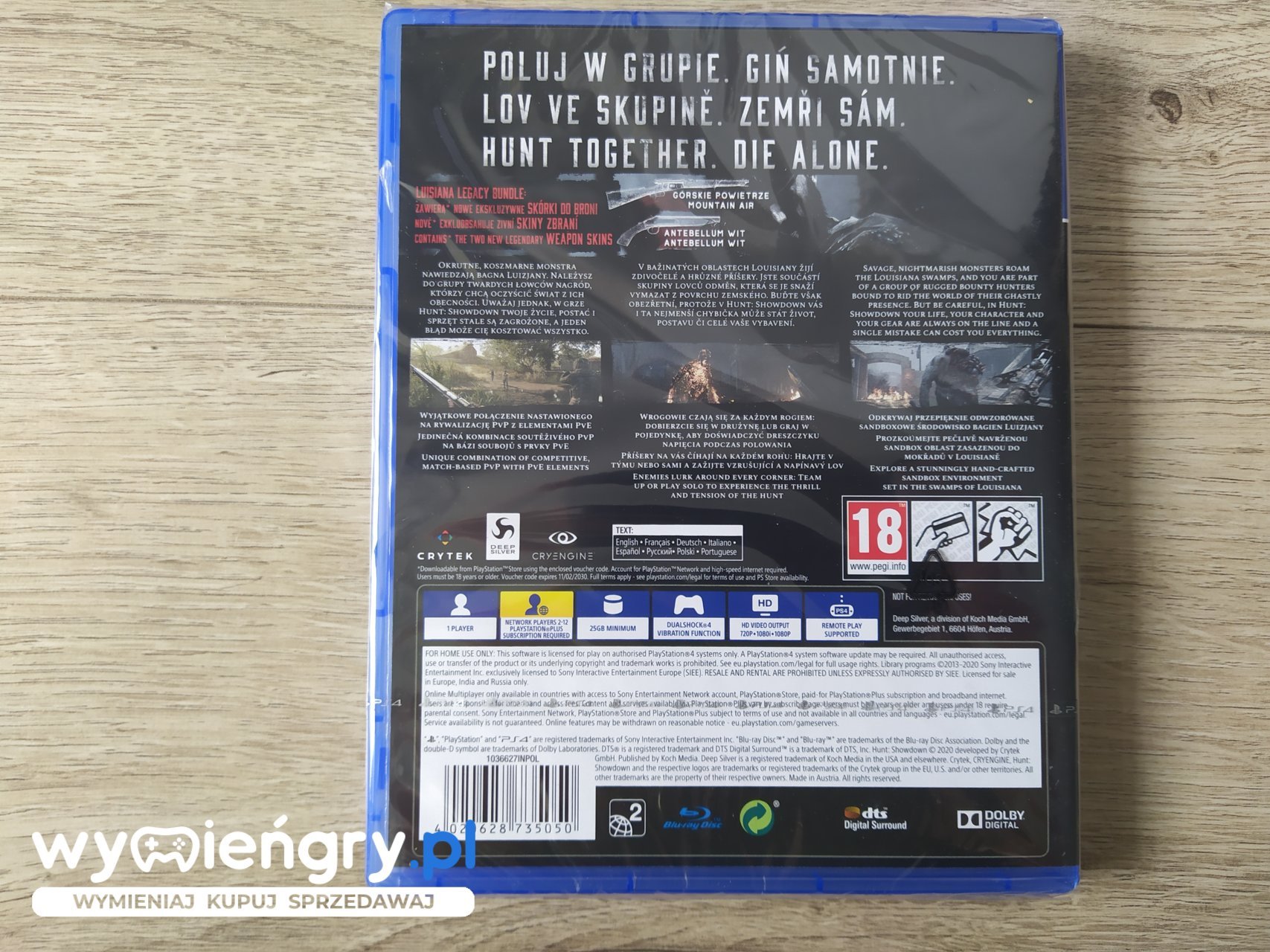 Pierwszoosobowa gra akcji nastawiona na kooperacyjną rozgrywkę sieciową. Za powstanie Hunt: Showdown odpowiada jeden z oddziałów firmy Crytek, złożony z twórców pracujących m.in. przy serii Darksiders. Potwory najeżdżają nasz świat, a ich cielska będą twoją nagrodą w tym intensywnym, opartym na pojedynczych potyczkach, pierwszoosobowym symulatorze łowcy nagród od twórców Crysis. Ty i twój partner w polowaniu jesteście członkami tajnej organizacji Łowców, którzy tropią i zabijają bestie. Stawka jest wysoka, tak jak i ryzyko. Najmniejszy błąd może sprawić, że stracisz wszystko: nagrodę, sprzęt, życie i samą duszę. Dodatek "Louisiana legacy" zawiera 2 legendarne skórki na broń – „górskie powietrze” na karabin Vetterli 71 i „antebellum wit” na pistolet Romero 77.