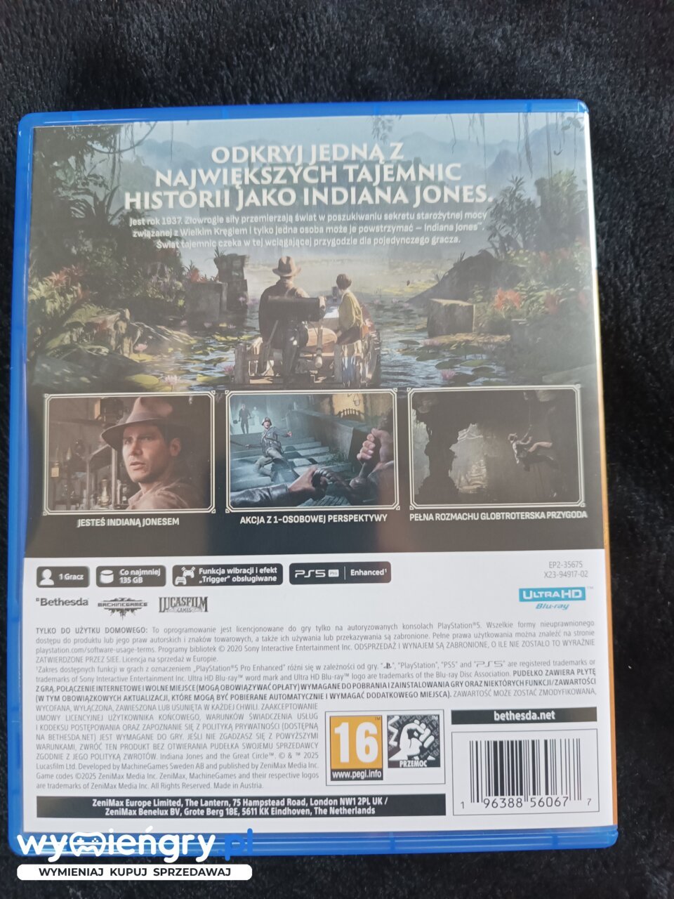 Przygodowa gra akcji FPP oparta na filmowej licencji, za której opracowaniem stoi studio Machine Games (znane z gier z serii Wolfenstein). W Indiana Jones and the Great Circle tytułowy bohater podąża tropem potężnego Wielkiego Kręgu, próbując odnaleźć go, nim zrobią to naziści. Indiana Jones i Wielki Krąg nie jest adaptacją żadnego z filmów, lecz opowiada nieznaną dotąd historię o słynnym poszukiwaczu przygód. Akcję tej pozycji osadzono w roku 1937, pomiędzy wydarzeniami przedstawionymi w Poszukiwaczach zaginionej Arki oraz ostatnią krucjatą. Edycja standardowa zawiera: Dodatek Przedsprzedażowy Pakiet Ostatniej Krucjaty: Podróżny Garnitur i Bicz Poskramiacza Lwów, Pełną wersję gry na nośniku fizycznym.
