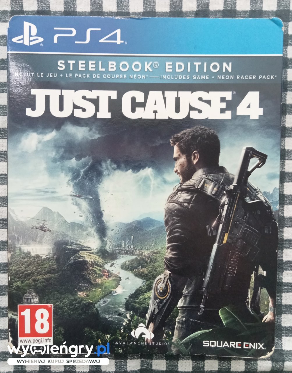 Just Cause 4 jest czwartą odsłoną popularnego cyklu gier akcji z otwartym światem, nad którym pieczę sprawuje szwedzki zespół Avalanche Studios. Głównym bohaterem Just Cause 4 jest znany z wcześniejszych odsłon cyklu Rico Rodriguez. Tym razem protagonista trafia fikcyjnego państwa Solis w Ameryce Południowej, którego mieszkańcy muszą zmagać się nie tylko ze skutkami gwałtownych zjawisk pogodowych, lecz także reżimem wprowadzonym przez Black Hand – paramilitarną organizację dowodzoną przez bezwzględną Gabrielę Morales. Heros musi się z nimi rozprawić, siejąc chaos i zniszczenie wszędzie tam, gdzie się pojawi, a także odkryć prawdę na temat swojego ojca. Just Cause 4: Steelbook Edition zawiera dodatkowo: Kolekcjonerski Steelbook oraz Neon Racer Pack.