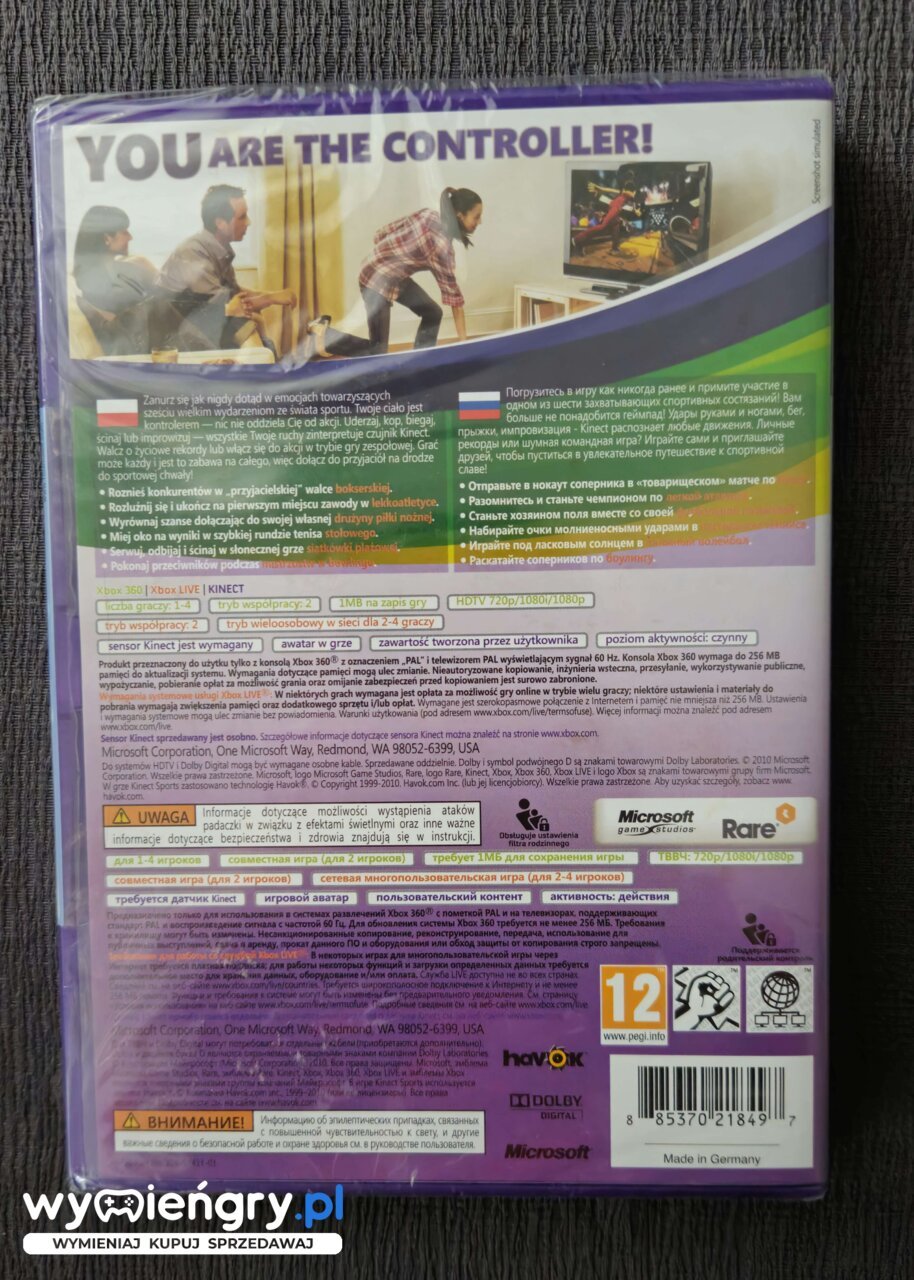 Oryginalne fabrycznie zafoliowane polskie wydanie Kinect Sports. Folia nienaruszona.