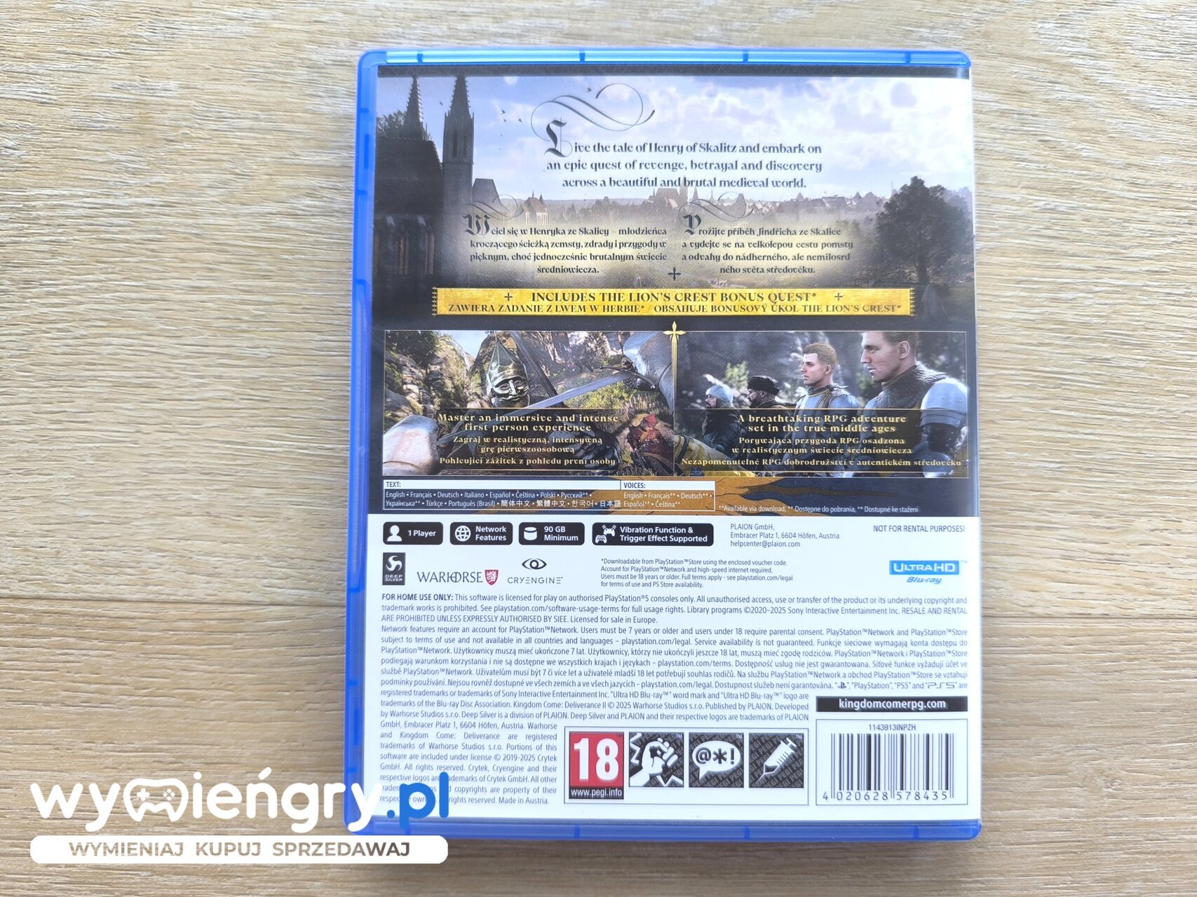 Sequel pierwszoosobowej gry RPG z otwartym światem osadzonej w średniowiecznych Czechach, którą wydano w 2018 roku. Kingdom Come: Deliverance 2 kontynuuje historię Henryka z większym rozmachem, oferując np. dwie rozległe mapy i rozbudowaną mechanikę rozgrywki. Wcielasz się w Henryka ze Skalicy – zwykłego człowieka dokonującego niezwykłych czynów – uwikłanego w porywającą opowieść o zemście, zdradzie i niesamowitych odkryciach. Wyrusz w epicką podróż „ze skromnej kuźni do królewskiego dworu”, poszukując sensu w tym pięknym, aczkolwiek brutalnym średniowiecznym świecie. Od tętniących życiem miejskich ulic po gęste lasy – odkrywaj średniowieczną Europę w tym otwartym świecie pełnym niezapomnianych przygód, akcji, emocji oraz cudów.