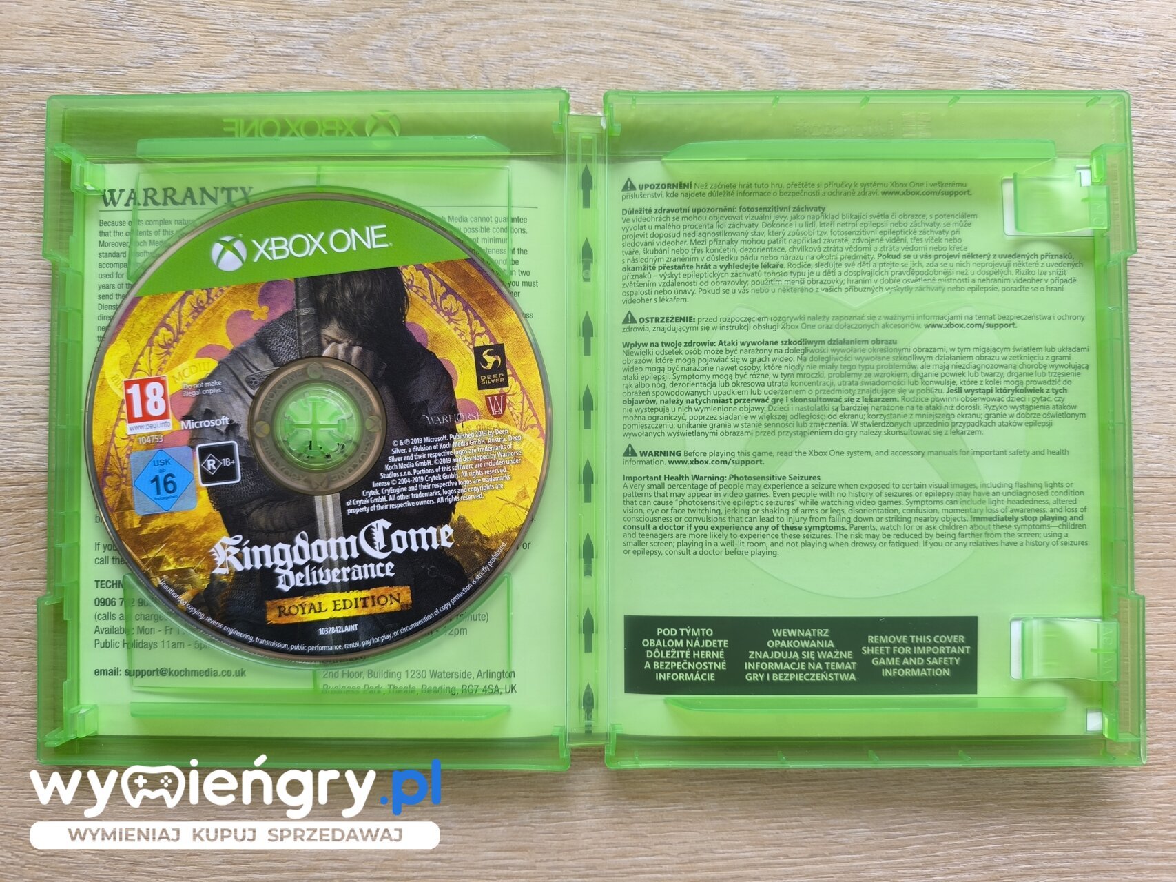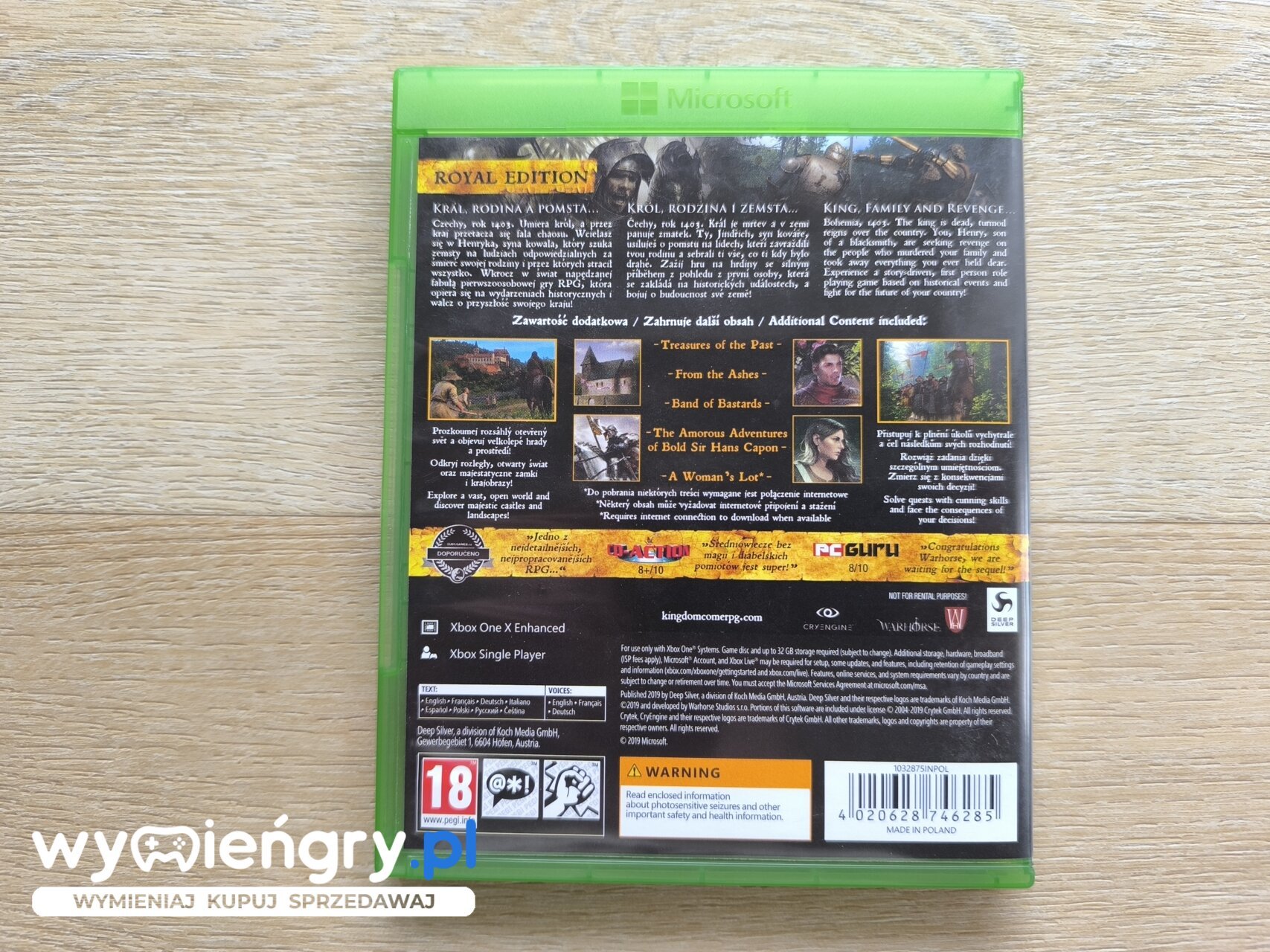 Kingdom Come: Deliverance to oparta na fabule i osadzona w otwartym świecie gra RPG, która pozwoli ci przeżyć niesamowitą przygodę rozgrywającą się w Świętym Cesarstwie Rzymskim. Kingdom Come: Deliverance - Royal Edition to nie jest zwykła kompilacja czy edycja GOTY. To zupełnie nowa pozycja, będąca wersją, jaką ta gra miała być od samego początku. Zawiera pełną wersję gry oraz wszystkie DLC (W tym DLC pre-orderowe - TREASURES OF THE PAST; 4 DLC będzie do bezpłatnego pobrania).