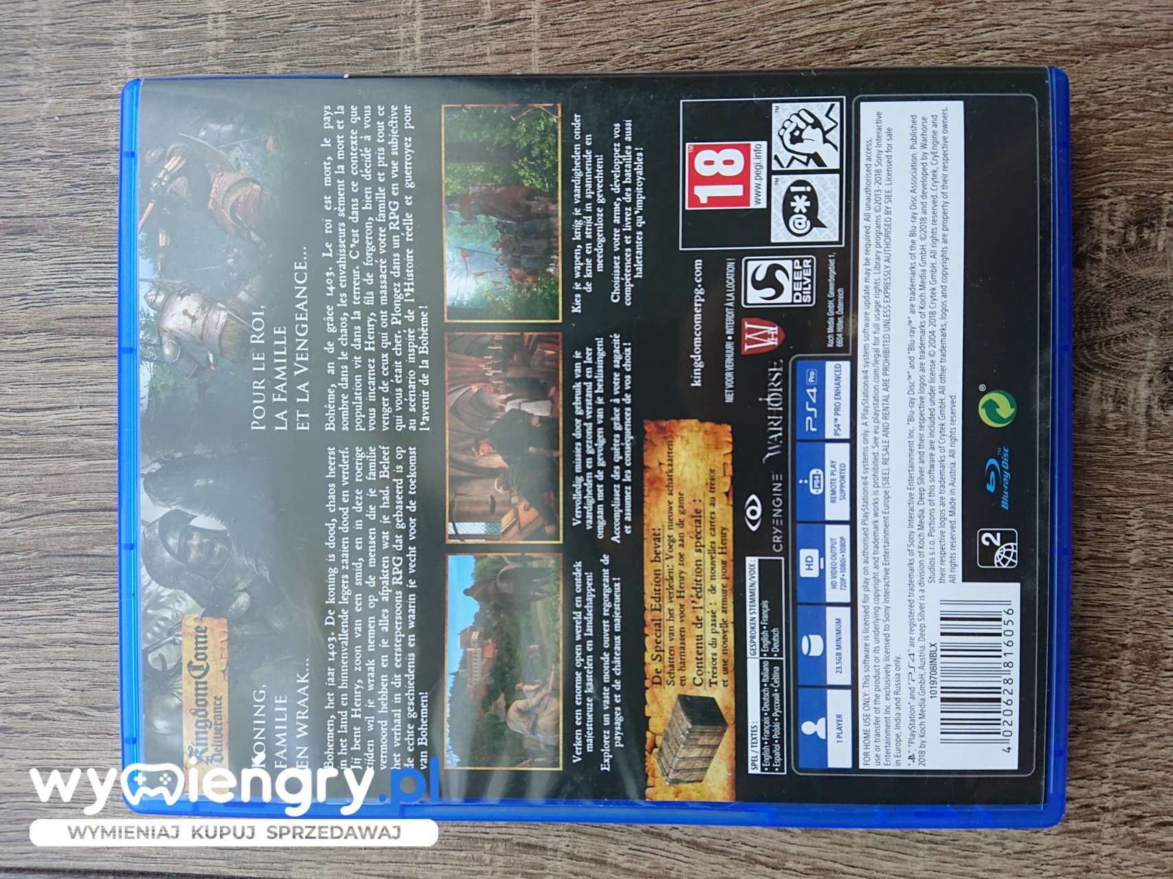 Zrealizowane na silniku CryEngine 3 epickie RPG akcji, osadzone w historycznych realiach krwawych wojen husyckich, które wstrząsnęły środkową Europą pierwszej połowy XV wieku. Wcielasz się w Henry’ego, syna kowala. Wokół toczy się bezwzględna wojna domowa, a ty możesz tylko patrzeć, jak najeźdźcy atakują twoją wioskę i mordują rodzinę. Ledwo uniknąwszy śmierci, chwytasz za miecz, aby dokonać zemsty. Pomścij rodziców, pomóż odeprzeć najeźdźców! Edycja specjalna zawiera pełną wersję gry Kingdom Come: Deliverance oraz zestaw map Skarby Przeszłości, a w nim ślady prowadzące do nowej, unikatowej zbroi!