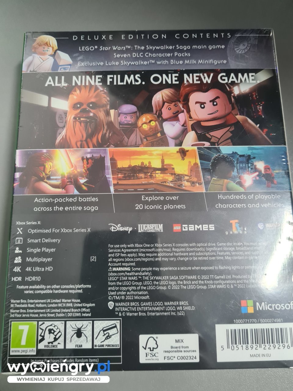 Gra nowa, zafoliowana, edycja zawiera figurkę Luka Skywalkera z niebieskim mlekiem, steelbook przedstawiający Hana Solo w Karbonicie, 7 DLC postaci oraz grę.