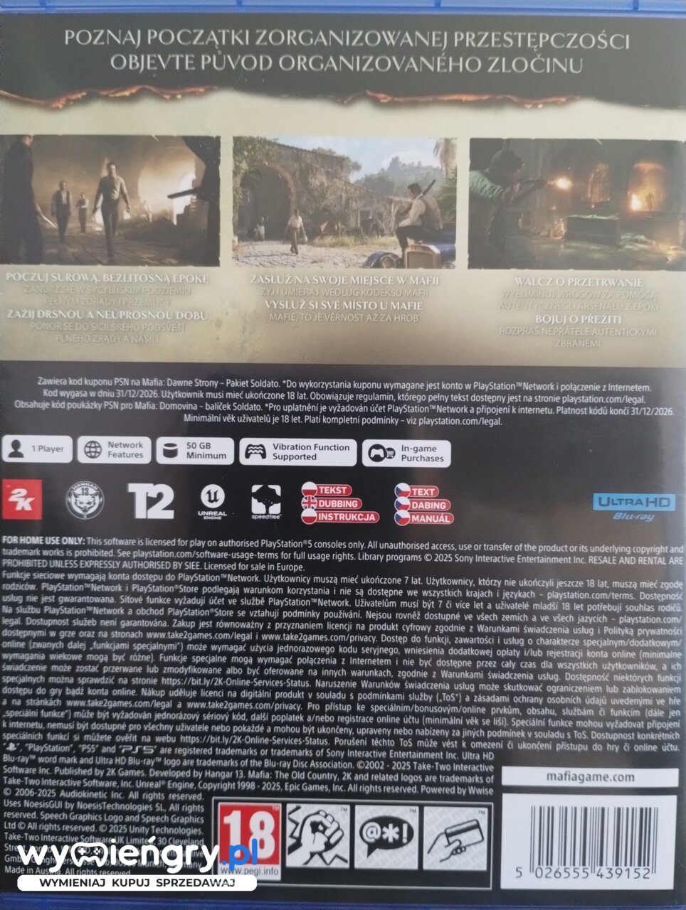 Czwarta część kultowej serii gier akcji, będąca prequelem cyklu pozbawionym otwartego świata. Poznaj początki zorganizowanej przestępczości w grze Mafia: The Old Country, brutalnej gangsterskiej opowieści o podziemnym światku Sycylii z XX wieku. Walcz o przetrwanie jako Enzo Favara i udowodnij cosa nostrze swoją wartość we wciągającej przygodowej grze akcji z perspektywy trzeciej osoby. Fabuła gry rozgrywa się w niezwykle groźnych i trudnych czasach. Enzo pragnie lepszego życia i nie cofnie się przed niczym, aby osiągnąć ten cel. Po ciężkim dzieciństwie spędzonym na przymusowej pracy gotów jest zaryzykować wszystko, by zostać „człowiekiem honoru” w przestępczej rodzinie Torrisi. Złożył cosa nostrze przysięgę, która daje mu władzę, ale z którą wiążą się też liczne pokusy i trudności. Przede wszystkim jednak musi pamiętać o podstawowej zasadzie: Rodzina wymaga poświęceń.