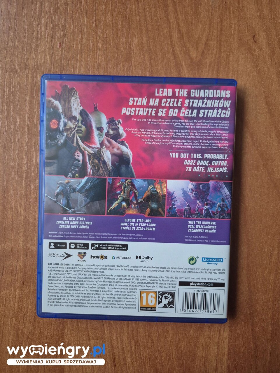 Marvel's Guardians of the Galaxy to przygodowa gra akcji studia Eidos Montreal, opowiadająca o tytułowych Strażnikach Galaktyki. Marvel's Guardians of the Galaxy zabiera nas w podróż do znanego z komiksowego pierwowzoru uniwersum science fiction. Przed kilkoma laty całą galaktyką wstrząsnęła gigantyczna wojna, której skutki są odczuwalne do dzisiaj. Jak się jednak okazuje, na tym nie kończą się jej problemy, a w wyniku serii katastrofalnych zdarzeń na horyzoncie zaczął majaczyć kolejny międzyplanetarny kryzys. Jak nietrudno się domyślić, z nadchodzącymi problemami mogą uporać się jedynie tytułowi Strażnicy, na czele z głównym bohaterem opisywanej gry – Peterem „Star Lordem” Quillem. Wraz z Grootem, Gamorą, Draksem i Rocketem protagonista udaje się w podróż, podczas której cała drużyna stawi czoła licznym zagrożeniom i wpadnie w niejedne tarapaty. To, jak potoczą się ich losy, jest w dużej mierze determinowane przez nasze poczynania i podejmowane przez nas decyzje.