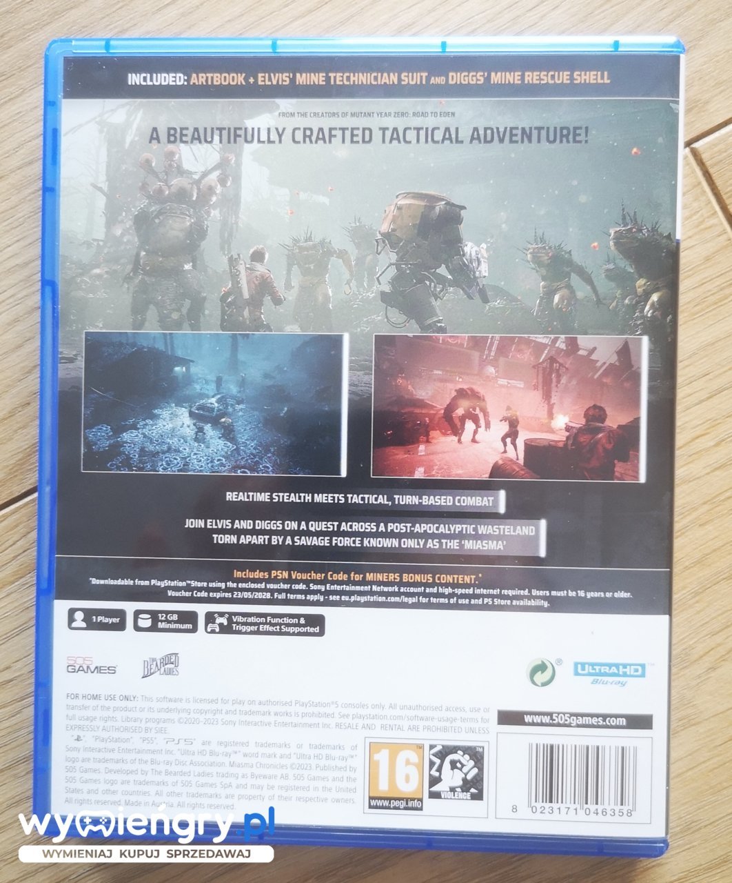 Gra taktyczna z elementami RPG, opracowana przez studio The Bearded Ladies – autorów ciepło przyjętego Mutant Year Zero: Road to Eden. W Miasma Chronicles przejmujemy kontrolę nad drużyną przemierzającą postapokaliptyczny świat opanowany przez tajemniczą, brutalną siłę. Miasma Chronicles roztacza przed nami ponurą wizję niedalekiej przyszłości, w której Ameryka, opanowana przez tajemniczą, brutalną siłę znaną jako Wyziew, zmieniła się w postapokaliptyczne pustkowie. Głównym bohaterem gry jest młodzieniec imieniem Elvis, mieszkający w górniczym miasteczku Sedentary ze swoim robotem-opiekunem – Diggsem. Wierząc, że otrzymana od matki rękawica potrafiąca kontrolować Wyziew zapewni mu bezpieczeństwo, pewnego dnia protagonista wyrusza z grupą przyjaciół w podróż, której celem jest uzyskanie odpowiedzi na nurtujące ich pytania. Elvis i jego świta nie wiedzą jeszcze, że to, czego przyjdzie im dokonać, wpłynie na losy całej ludzkości. Edycja pudełkowa zawiera ekskluzywny artbook i następującą zawartość w grze: kombinezon Elvisa - technika górniczego oraz skorupę Diggsa - ratownika górniczego.