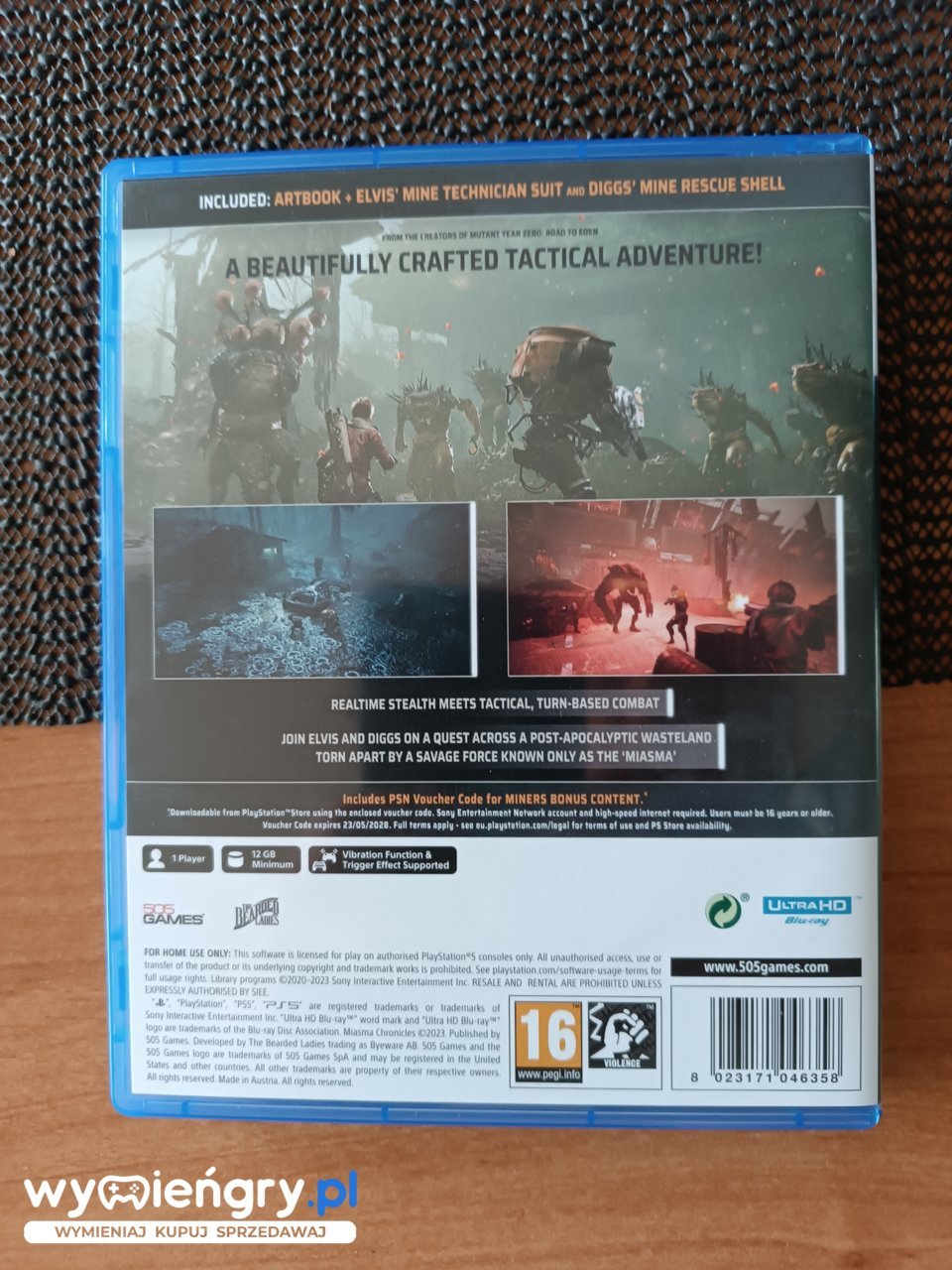 Gra taktyczna z elementami RPG, opracowana przez studio The Bearded Ladies – autorów ciepło przyjętego Mutant Year Zero: Road to Eden. W Miasma Chronicles przejmujemy kontrolę nad drużyną przemierzającą postapokaliptyczny świat opanowany przez tajemniczą, brutalną siłę. Miasma Chronicles roztacza przed nami ponurą wizję niedalekiej przyszłości, w której Ameryka, opanowana przez tajemniczą, brutalną siłę znaną jako Wyziew, zmieniła się w postapokaliptyczne pustkowie. Głównym bohaterem gry jest młodzieniec imieniem Elvis, mieszkający w górniczym miasteczku Sedentary ze swoim robotem-opiekunem – Diggsem. Wierząc, że otrzymana od matki rękawica potrafiąca kontrolować Wyziew zapewni mu bezpieczeństwo, pewnego dnia protagonista wyrusza z grupą przyjaciół w podróż, której celem jest uzyskanie odpowiedzi na nurtujące ich pytania. Elvis i jego świta nie wiedzą jeszcze, że to, czego przyjdzie im dokonać, wpłynie na losy całej ludzkości. Edycja pudełkowa zawiera ekskluzywny artbook i następującą zawartość w grze: kombinezon Elvisa - technika górniczego oraz skorupę Diggsa - ratownika górniczego.