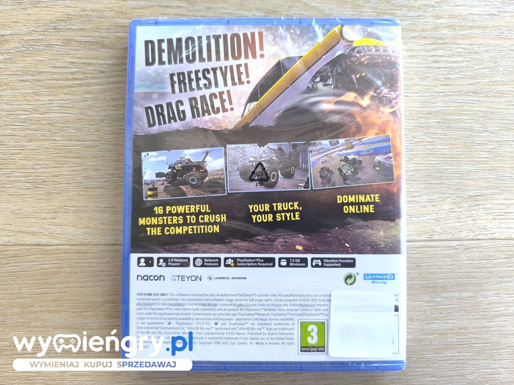 Gra wyścigowa, w której bierzemy udział w różnorodnych zawodach tytułowych wielkich samochodów terenowych. Monster Truck Championship jest dziełem polskiego studia Teyon (twórców m.in. Terminator: Resistance). W Monster Truck Championship możemy spróbować swoich sił w różnorodnych dyscyplinach. Oprócz klasycznych wyścigów i prób czasowych na sprawdzenie czekają zawody polegające na widowiskowym zderzaniu się z oponentami (wygrywa je zawodnik, którego pojazd jako ostatni utrzyma się na kołach) oraz mistrzostwa typu freestyle, gdzie trafiamy na arenę upstrzoną rozmaitymi przeszkodami i skoczniami oraz wykonujemy efektowne sztuczki przed publicznością. Wszystko to na dwudziestu pięciu trasach rozrzuconych po całych Stanach Zjednoczonych – od Orlando, aż po Las Vegas.