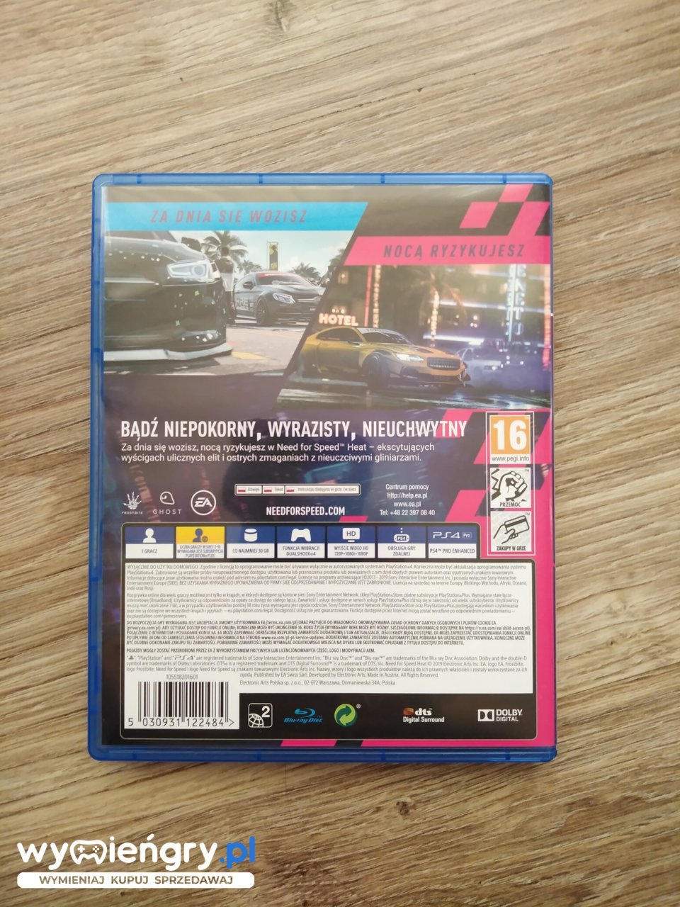 Dwudziesta pierwsza główna odsłona popularnej serii gier wyścigowych Need for Speed. W Need for Speed: Heat trafiamy do Palm City, gdzie za dnia bierzemy udział w mistrzostwach Speedhunters Showdown, z kolei nocą walczymy o zwycięstwo w nielegalnych wyścigach ulicznych. W trakcie zabawy wcielamy się w bohatera, który stopniowo pnie się po szczeblach kariery, zdobywając reputację i zarabiając coraz większe pieniądze. Tytuł oferuje szerokie możliwości personalizacji samochodów; możemy zarówno wprowadzać modyfikacje optyczne, jak i mechaniczne. Lista tych pierwszych obejmuje zmianę barwy karoserii, świateł, opon czy tablic rejestracyjnych, a także instalację spojlerów, progów i zderzaków (lub nakładek na nie) czy wreszcie wymianę i dopasowanie wyglądu felg oraz zmianę brzmienia wydechu. Tuning mechaniczny obejmuje przede wszystkim wymianę silnika (po raz pierwszy w historii) serii. W NFS Heat na PlayStation 4 można grać zarówno w pojedynkę, jak i w trybie multiplayer.
