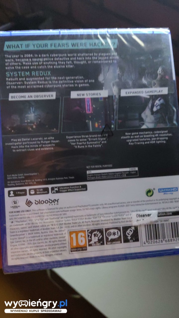 Odświeżona wersja wydanego w 2017 roku horroru psychologicznego FPP w cyberpunkowych realiach. Observer: System Redux oferuje nie tylko poprawioną oprawę graficzną, ale również dodatkową zawartość fabularną. Za grę odpowiada polskie studio Bloober Team. Historia przedstawiona w Observer: System Redux ma miejsce w Krakowie w 2084 roku. Chociaż produkcja została wzbogacona o dodatkowe wątki, to trzon opowieści nie został zmieniony. Gracz wciela się w Daniela Lazarskiego, czyli tzw. Obserwatora – policjanta zdolnego hakować umysły podejrzanych. Właściwa akcja rozpoczyna się w momencie, gdy otrzymuje on list od zaginionego syna, inżyniera zatrudnionego w Chiron Corporation – firmie finansującej jednostkę, dla której pracuje główny bohater. Zawartość wydania Edycji Day One: Płyta z grą, 52-stronicowy artbook w miękkiej oprawie oraz płyta CD ze ścieżką dźwiękową.