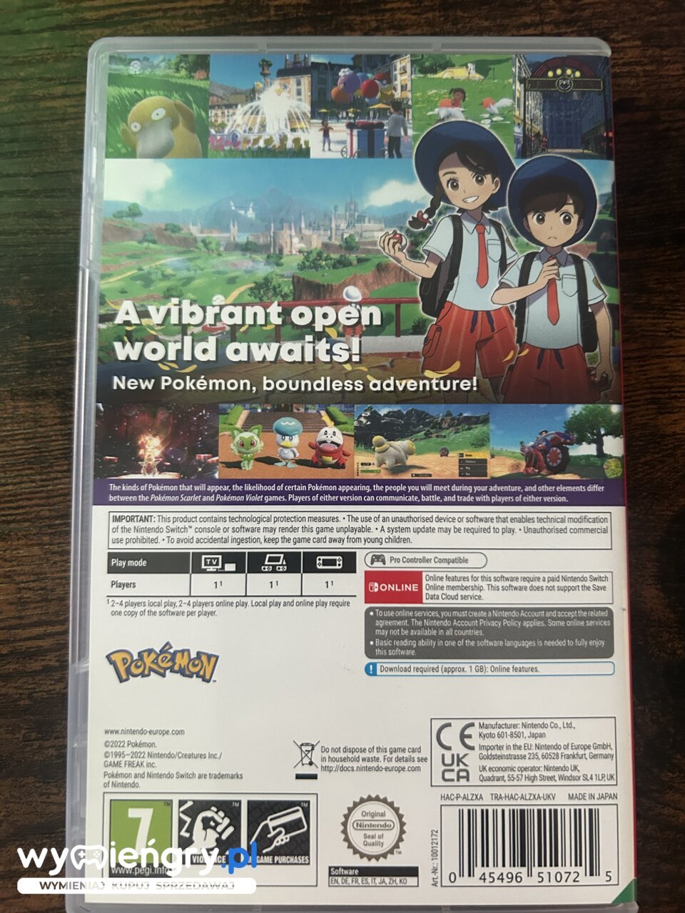 Pokemon Scarlet to gra RPG stanowiąca część jednego z najpopularniejszych cykli z tego gatunku. Produkcję opracowało studio Game Freak, czyli autorzy poprzednich części. Tytuł zadebiutował wraz z bliźniaczym Pokemon Violet. Obie pozycje mają w większości taką samą zawartość. Każda z nich posiada jednak kilka unikalnych stworków, więc zdobycie wszystkich wymaga handlu z osobami posiadającymi odmienną edycję niż nasza. Obie wersje oferują również inne stroje dla naszej postaci. W grze Pokémon Scarlet poznasz profesor Sada, a w Pokémon Violet profesora Turo. Na początku zabawy wybieramy startowego pokemona spośród trzech dostępnych. Wśród nich jest Sprigatito (trawiasty kot), Fuecoco (ognisty krokodyl) oraz przypominający kaczkę Quaxly. Potem wyruszamy na przygodę. Po raz pierwszy w przypadku głównych odsłon serii, autorzy zdecydowali się na otwartą strukturę świata, który dzięki temu oferuje znacznie więcej swobody eksploracji niż wcześniej.