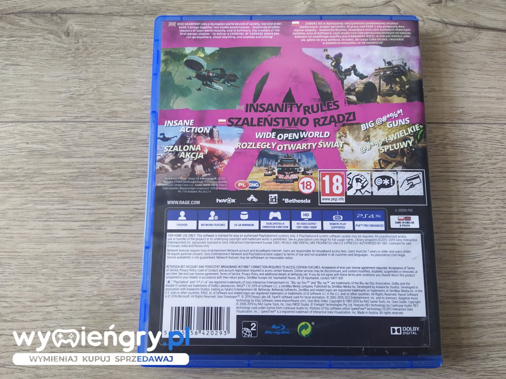 Druga część serii postapokaliptycznych gier FPS, zapoczątkowanej przez zespół id Software. W pracy nad RAGE 2 siły połączyły dwa słynne zespoły – Avalanche Studios, skupiające mistrzów szalonych otwartych światów, oraz id Software, czyli studio bogów pierwszoosobowych strzelanin – a owocem ich wspólnego wysiłku jest karnawał rzezi, w którym możesz udać się, dokąd tylko chcesz, strzelać, do czego tylko chcesz, i wysadzić w powietrze wszystko, co się napatoczy. Pozbawiono cię domu i pozostawiono na pewną śmierć w świecie, gdzie czekają na ciebie niesamowite starcia pojazdów, pierwszoosobowa rozwałka na sterydach, przepełniony szaleństwem otwarty świat oraz zapalczywa walka o wolność i sprawiedliwość. Musisz przedrzeć się przez bezwzględne pustkowia, walcząc z żądnymi krwi gangami, by zdobyć narzędzia i technologię, które umożliwią zadanie ostatecznego ciosu opresyjnej Władzy.