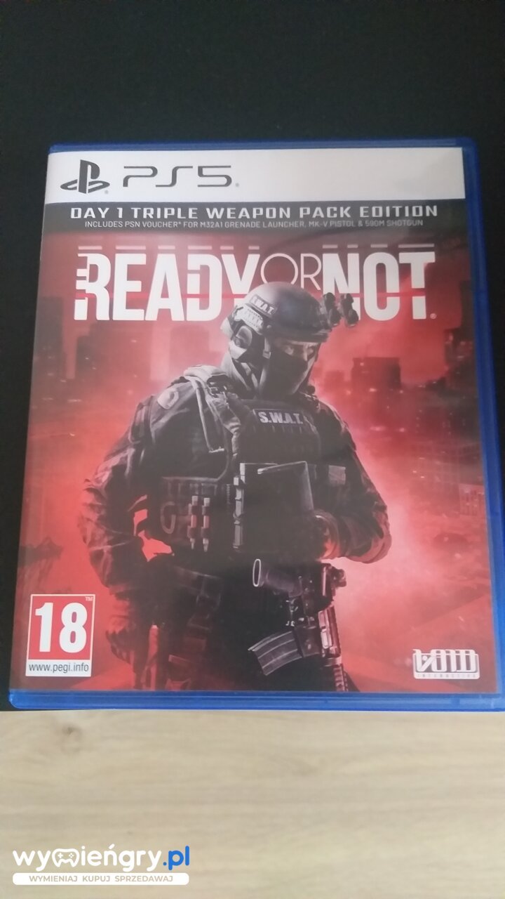 Taktyczna strzelanka FPP pozwalająca graczowi na wcielenie się w członka legendarnej jednostki policyjnej SWAT. W trakcie zabawy w Ready or Not wykonujemy specjalne zadania, których realizacja wymaga szybkich, profesjonalnie skoordynowanych i starannie przygotowanych działań. Akcja Ready or Not toczy się we współczesnych Stanach Zjednoczonych, które zaczęły pogrążać się w chaosie wraz ze wzrostem rozbieżności pomiędzy poszczególnymi klasami społecznymi. Gracz wciela się w członka słynnej jednostki policyjnej SWAT, wyszkolonego do zadań specjalnych, wymagających szybkich, profesjonalnie skoordynowanych i starannie przygotowanych działań, na czele z ratowaniem życia zakładników. Edycja Day One będzie zawierać voucher na trzy dodatkowe bronie: granatnik M32A1, pistolet MK-V oraz strzelbę 590M.