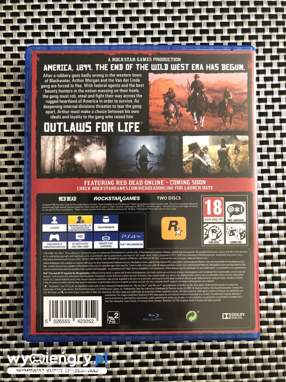 Przeżyj ponadczasową opowieść o dzikim zachodzie w Red Dead Redemption 2. Wciel się w Arthura Morgana, wyjętego spod prawa członka gangu, i podążaj śladem zdrad, miłości i zemsty. Eksploruj ogromny, otwarty świat, odkrywając tajemnice dzikiego zachodu, polując na dzikie zwierzęta i uczestnicząc w niezapomnianych przygodach. Przyjaźń i lojalność stają na próbie, gdy walczysz o przetrwanie w surowych realiach niebezpiecznego świata. Red Dead Redemption 2 to niezapomniana, filmowa podróż pełna niespodziewanych zwrotów akcji.