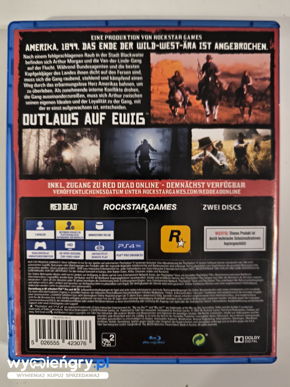 Przeżyj ponadczasową opowieść o dzikim zachodzie w Red Dead Redemption 2. Wciel się w Arthura Morgana, wyjętego spod prawa członka gangu, i podążaj śladem zdrad, miłości i zemsty. Eksploruj ogromny, otwarty świat, odkrywając tajemnice dzikiego zachodu, polując na dzikie zwierzęta i uczestnicząc w niezapomnianych przygodach. Przyjaźń i lojalność stają na próbie, gdy walczysz o przetrwanie w surowych realiach niebezpiecznego świata. Red Dead Redemption 2 to niezapomniana, filmowa podróż pełna niespodziewanych zwrotów akcji.