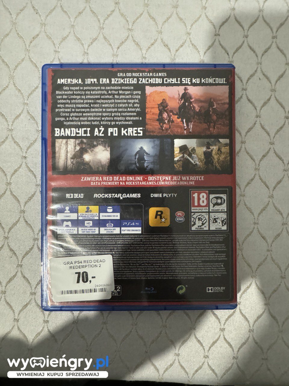 Przeżyj ponadczasową opowieść o dzikim zachodzie w Red Dead Redemption 2. Wciel się w Arthura Morgana, wyjętego spod prawa członka gangu, i podążaj śladem zdrad, miłości i zemsty. Eksploruj ogromny, otwarty świat, odkrywając tajemnice dzikiego zachodu, polując na dzikie zwierzęta i uczestnicząc w niezapomnianych przygodach. Przyjaźń i lojalność stają na próbie, gdy walczysz o przetrwanie w surowych realiach niebezpiecznego świata. Red Dead Redemption 2 to niezapomniana, filmowa podróż pełna niespodziewanych zwrotów akcji.