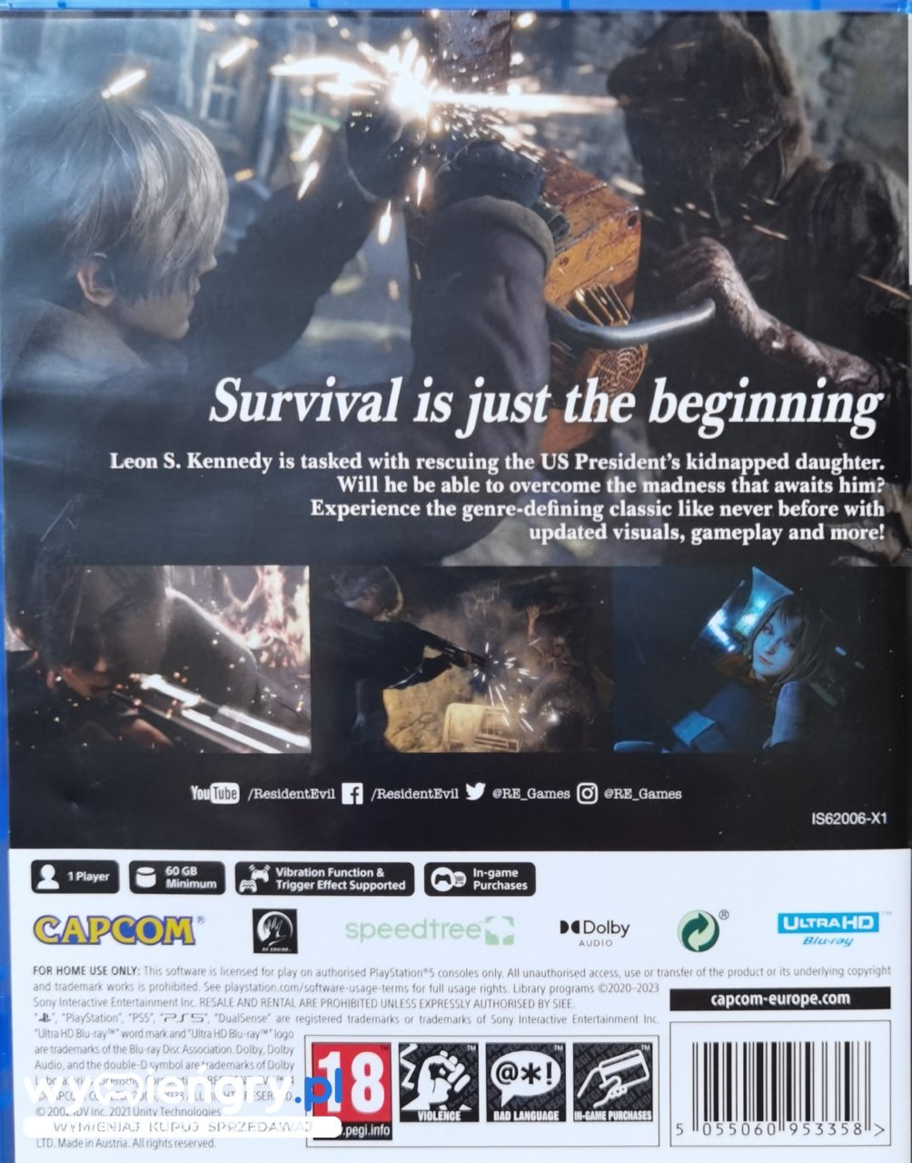 Przeżyj mroczne tajemnice Resident Evil 4, gdzie każdy krok to walka o przetrwanie. Wciel się w Leona S. Kennedy'ego, agenta specjalnego, który zostaje wysłany na misję odbicia porwanej córki prezydenta. W trakcie swojej podróży trafi na tajemniczą wieś pełną przerażających istot. Odkryj mroczne intrygi, zmierzyć się z niebezpieczeństwami i odważ się stawić czoła karabinowi na ograniczoną ilość amunicji. Czy przetrwasz w tej niesamowicie intrygującej i strasznie realistycznej przygodzie?