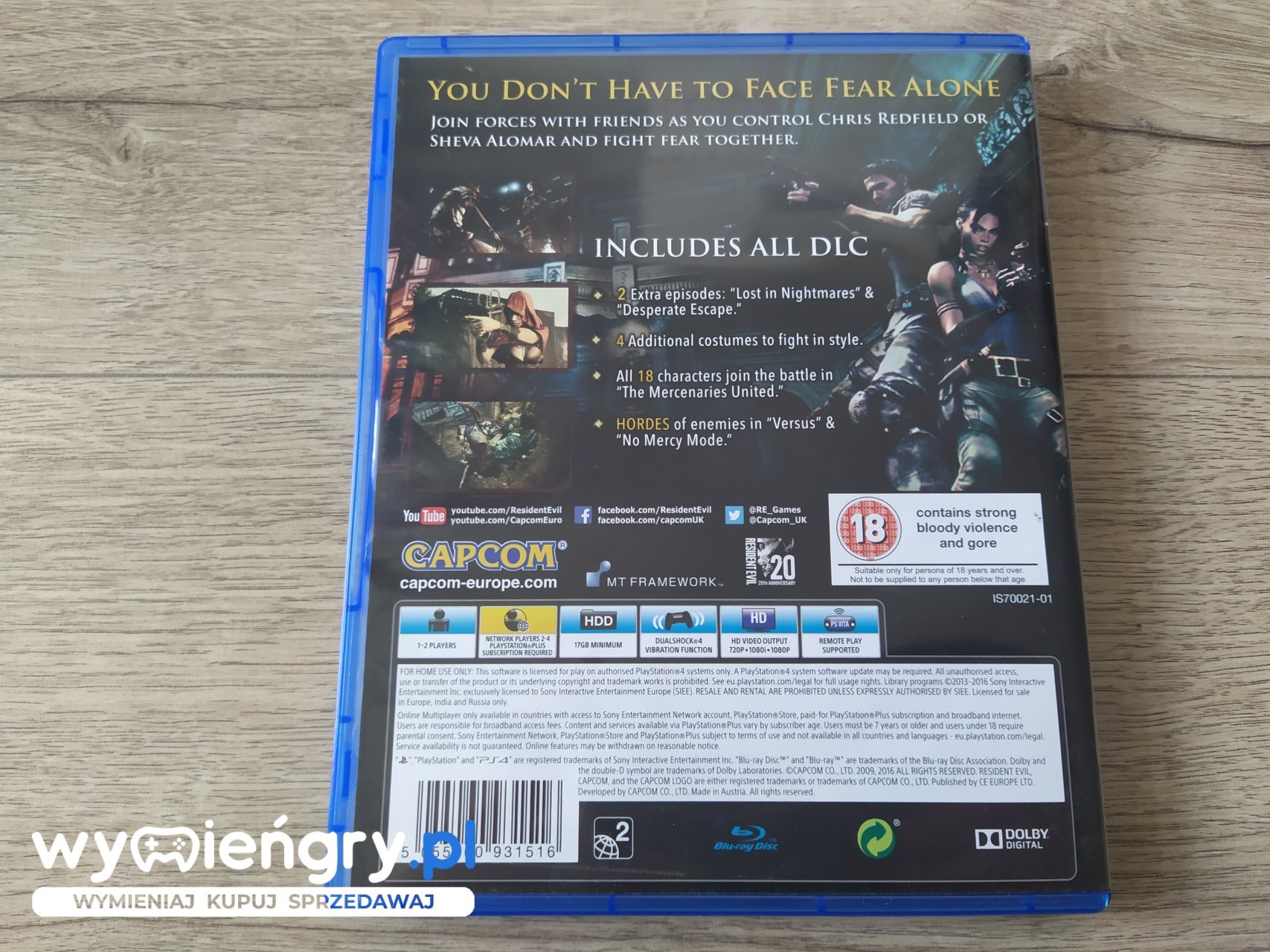 Gra akcji z widokiem z perspektywy trzeciej osoby (TPP), stanowiąca kolejną odsłonę popularnego cyklu survival horrorów. Fabuła kampanii głównej Resident Evil 5 przedstawia wydarzenia toczące się 10 lat po zniszczeniu miasteczka Raccoon City. Specjalna wersja na PS4 z bonusami: 2 dodatkowe episody: Lost in Nightmare i Desperate Escape, 4 dodatkowe kostiumy, 18 postaci -Horde of enemis w Versus i No Moercy Mode.