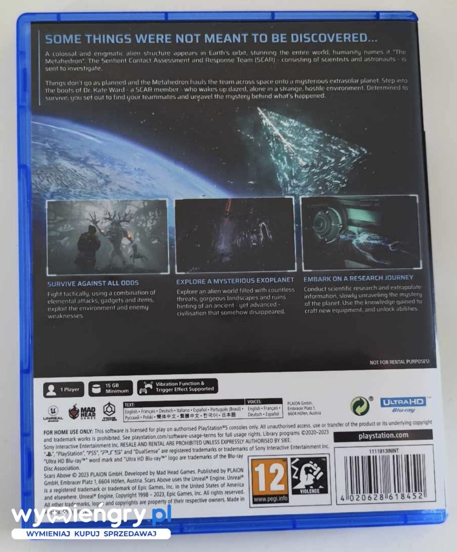 Przygodowa gra akcji TPP, opracowana przez zespół Mad Head Games i wydana przez firmę Prime Matter. Scars Above zabiera nas w podróż na pełną niebezpieczeństw planetę, którą przemierzamy, stawiając czoła zamieszkującym ją potworom. Kiedy w pobliżu Ziemi pojawia się obiekt nieznanego pochodzenia, zostaje do niego wysłana grupa badaczy, zwana SCAR. Po zbliżeniu się do niego zespół w tajemniczych okolicznościach zostaje teleportowany na powierzchnię nieznanej planety. W Scars Above wcielamy się w Kate Ward – naukowczynię i astronautkę, która utknęła na tym pełnym niebezpieczeństw globie. Teraz jej zadaniem jest znalezienie pozostałych członków grupy, odkrycie, co tak naprawdę się wydarzyło, a przede wszystkim – znalezienie drogi do domu. Niejako przy okazji protagonistka stopniowo poznaje ten nieznany, pełen zagadek świat.