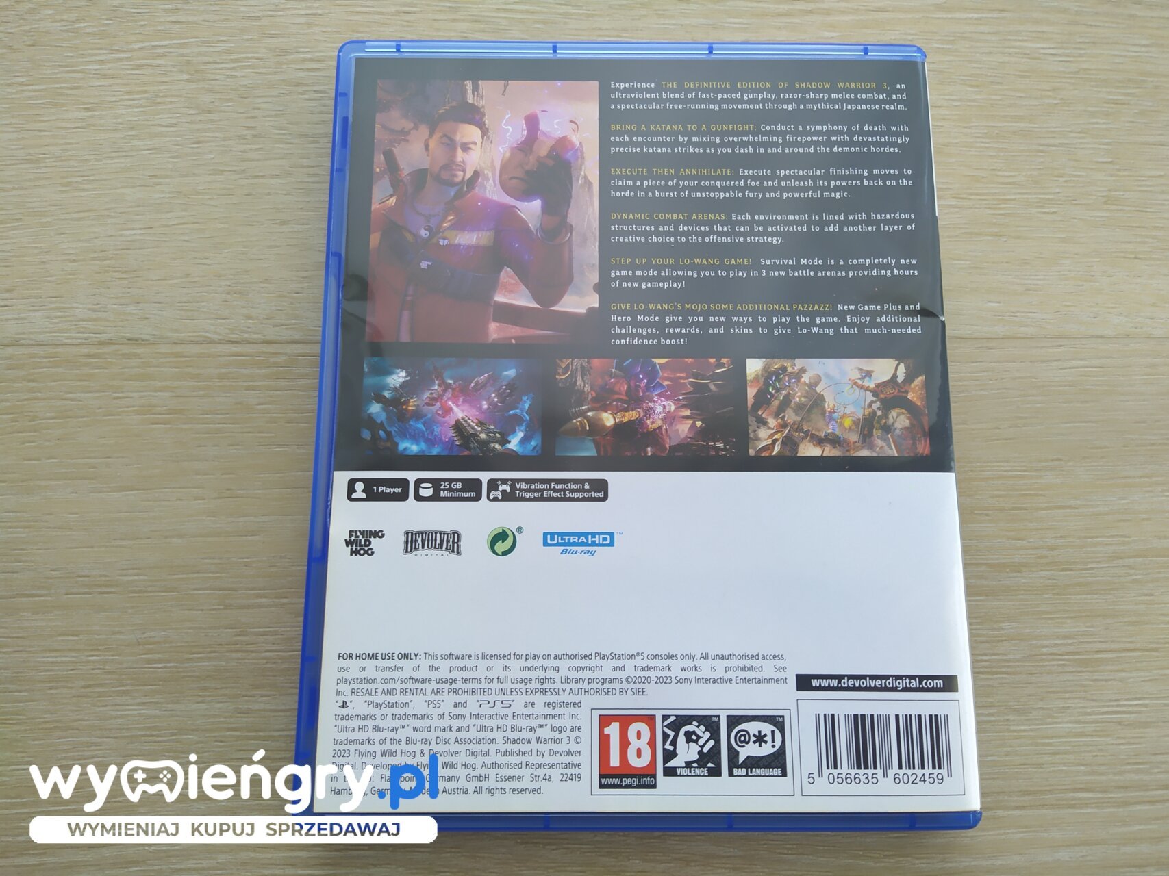 Kolejna odsłona cyklu dynamicznych gier akcji FPP od polskiego studia Flying Wild Hog. Tym razem udajemy się w pogoń za starożytnym smokiem, by powstrzymać koniec świata. Przy okazji wybijamy hordy demonów w brutalnych starciach z wykorzystaniem katany i broni palnej. Trzecia odsłona Shadow Warriora kontynuuje wydarzenia z „dwójki”. Ponownie wcielamy się w gadatliwego najemnika Lo Wanga, który wpakował cały świat w niezłe tarapaty, uwalniając niechcący potężnego starożytnego smoka – konsekwencją tego czynu może być apokalipsa. Protagonista udaje się na wyprawę w poszukiwaniu sposobu na pokonanie bestii u boku niegdysiejszego wroga, Zilli oraz Hojiego i jego niewyparzonej gęby.