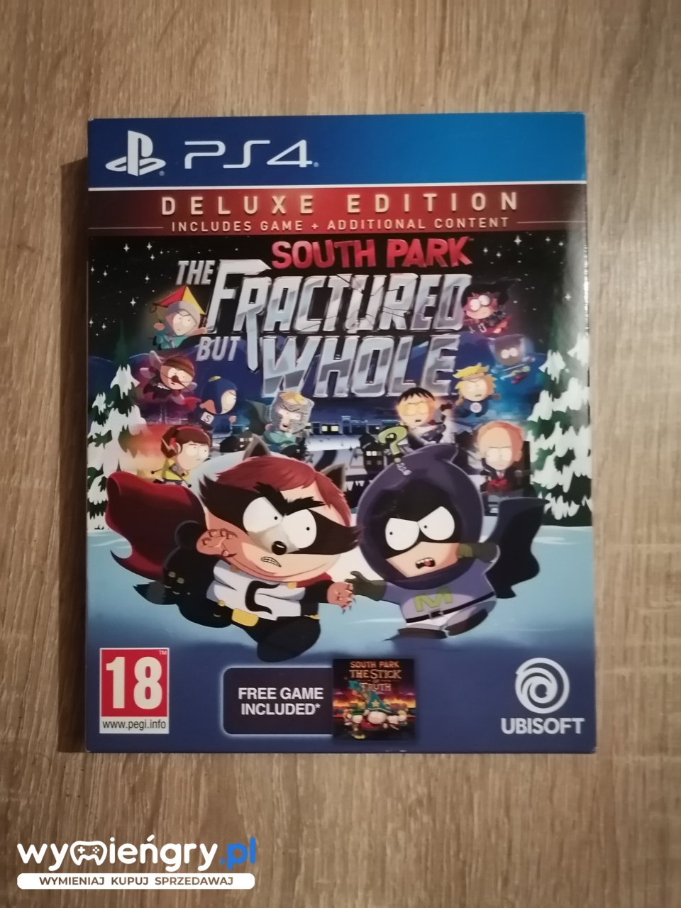 Kolejna odsłona cyklu gier RPG, osadzonych w uniwersum kultowej kreskówki dla dorosłych stacji Comedy Central. Fabuła South Park: The Fractured But Whole skonstruowana została na bardzo podobnych zasadach, jak w grze South Park: Kijek Prawdy; o ile jednak poprzednia odsłona serii naśmiewała się z banałów obecnych w szeroko pojętym gatunku fantasy, tak część druga na celownik wzięła filmy i komiksy o superbohaterach. W spokojnym górskim miasteczku South Park pojawiło się mroczne zło. Powstaje nowa siła i tym razem cała drużyna superbohaterów musi się jej przeciwstawić. Stwórz własnego superbohatera, bądź architektem swej złej sławy i wykorzystaj swoje niesamowite możliwości, aby ocalić South Park. Zawartość fizyczna edycji Deluxe: gra South Park: The Fractured But Whole oraz 3 pocztówki zaprojektowane przez Studio South Park. Zawartość cyfrowa: Kostium i pakiet dodatków.