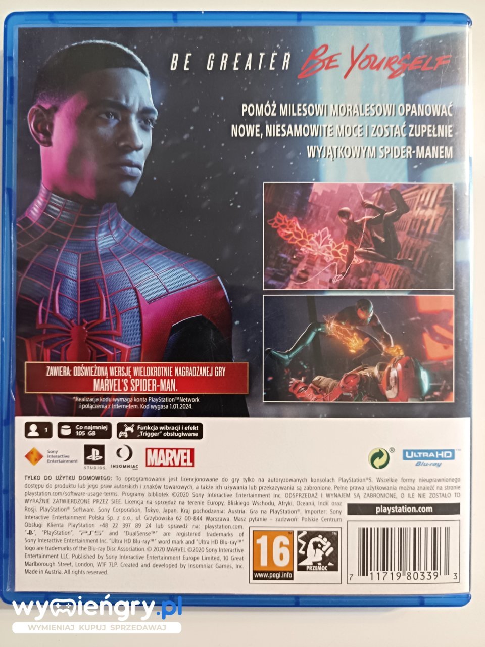 Spider-Man: Miles Morales to będąca samodzielną produkcją kontynuacja wydanej w 2018 roku gry akcji pod tytułem Spider-Man. Za opracowaniem tego tytułu stoją autorzy pierwowzoru, czyli studio Insomniac Games. Marvel’s Spider-Man Miles Morales to kolejna przygoda z udziałem tytułowego człowieka-pająka, w którego tym razem wcielił się nastoletni Miles Morales. Podążając za śladami swojego mentora, Petera Parkera, chłopak będzie musiał przyzwyczaić się do nowego otoczenia oraz opanować swoje supermoce, gdyż Nowemu Jorkowi ponownie zagraża niebezpieczeństwo. Edycja Ultimate zawiera: Marvel’s Spider-Man: Miles Morales i Marvel’s Spider-Man Remastered, w tym: pełną wersję wielokrotnie nagradzanej gry oraz wszystkie trzy rozdziały dodatkowej przygody, Marvel’s Spider-Man: The City That Never Sleeps.