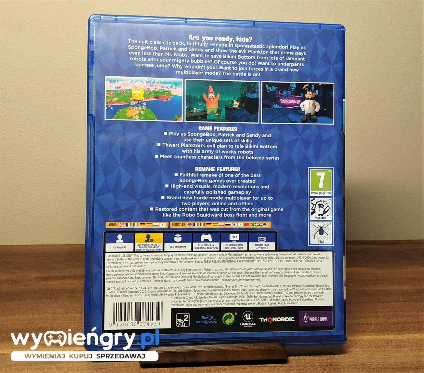 Przedmiotem sprzedaży/wymiany jest gra SpongeBob SquarePants: Battle for Bikini Bottom - Rehydrated na platformę PS4.
