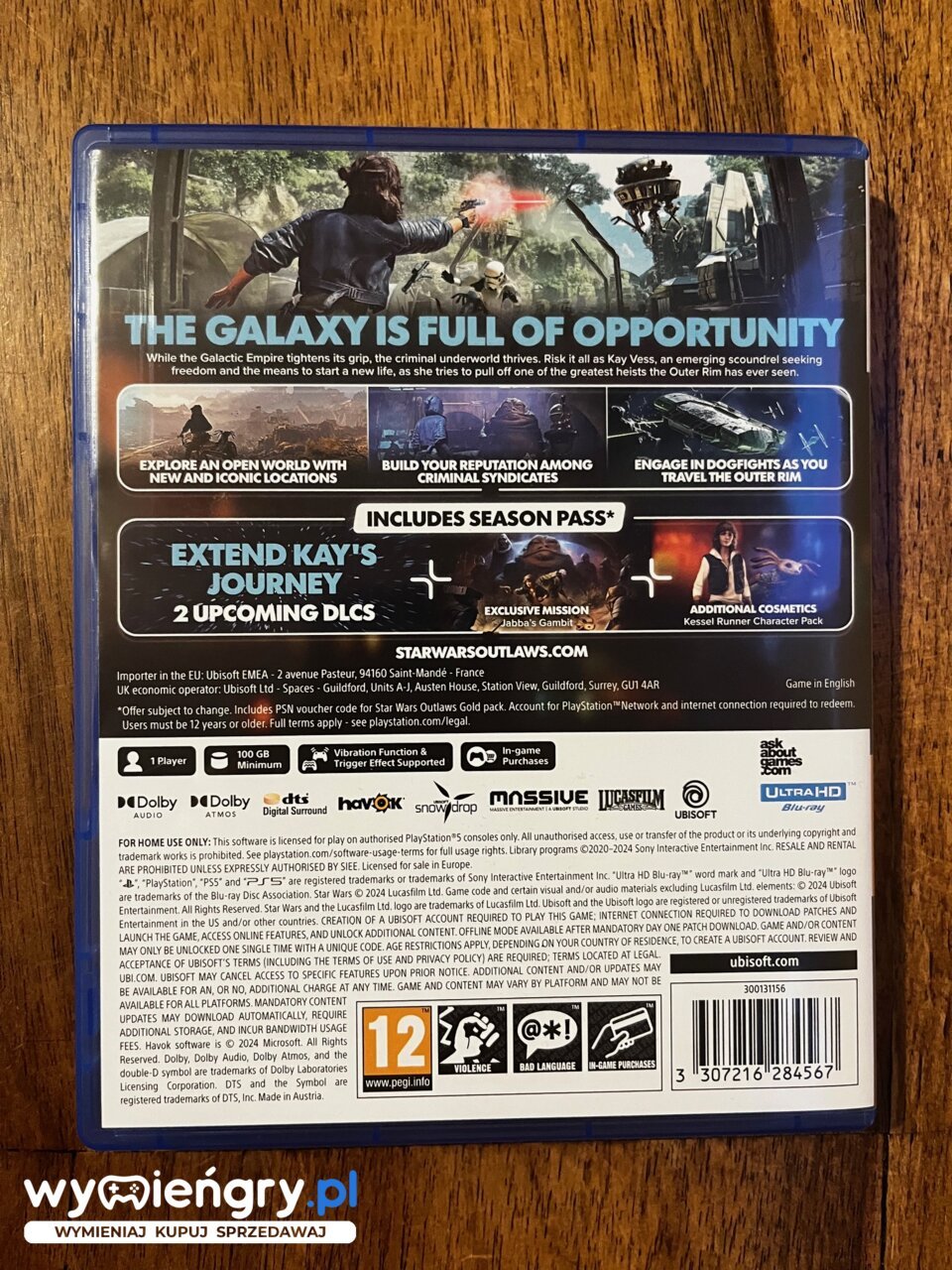 Poznaj pierwszą grę z uniwersum Star Wars™ z otwartym światem i odwiedzaj wyjątkowe miejsca w całej galaktyce – dobrze znane i nowe. Kuś los jako łotrzyca Kay Vess w pogoni za wolnością i zasobami na rozpoczęcie nowego życia. Walcz, kradnij i wywijaj się syndykatom przestępczym, by dołączyć do najbardziej poszukiwanych w galaktyce. Zagraj nawet 3 dni wcześniej dzięki wydaniu Gold Edition z podstawową wersją gry i przepustką sezonową.