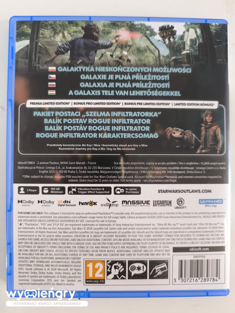 Poznaj pierwszą grę z uniwersum Star Wars™ z otwartym światem i odwiedzaj wyjątkowe miejsca w całej galaktyce – dobrze znane i nowe. Kuś los jako łotrzyca Kay Vess w pogoni za wolnością i zasobami na rozpoczęcie nowego życia. Walcz, kradnij i wywijaj się syndykatom przestępczym, by dołączyć do najbardziej poszukiwanych w galaktyce. Limited Edition zawiera pełną wersję gry oraz pakiet postaci „Szelma infiltratorka”, który oferuje przedmioty kosmetyczne dla Kay i Nixa.