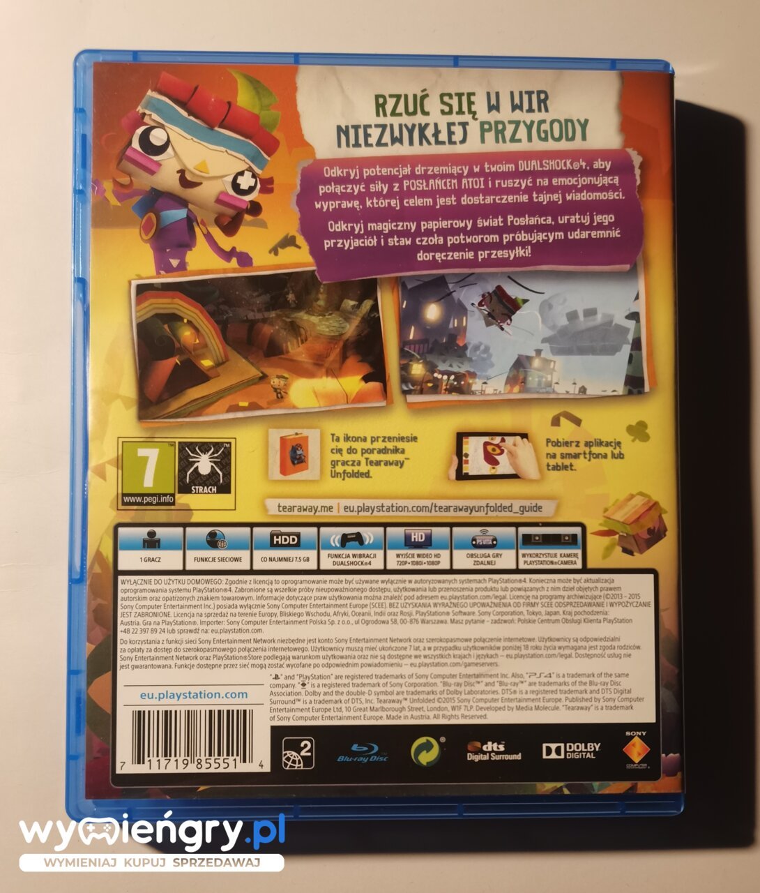 Udoskonalona wersja trójwymiarowej platformówki studia Media Molecule, która zadebiutowała w roku 2013 na przenośnej konsoli PlayStation Vita. Akcja gry Tearaway Unfolded przenosi nas do magicznego świata, stworzonego w całości z papieru.
