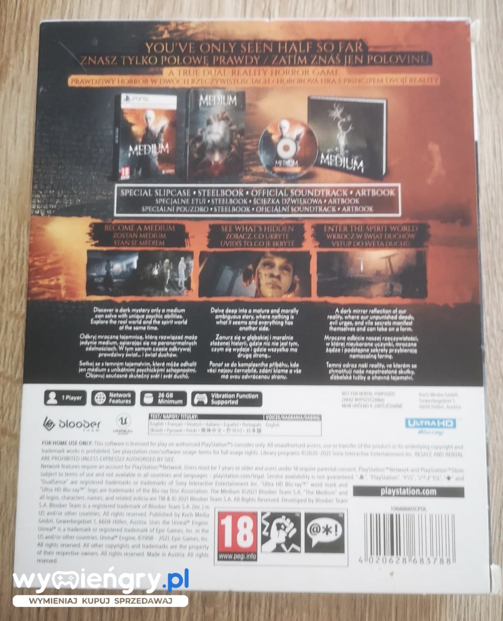The Medium to horror, w którym wcielamy się w kobietę potrafiącą widzieć świat duchów (tytułowe medium). Protagonistka stara się rozwikłać zagadkę śmierci pewnego dziecka. Tytuł został opracowany przez krakowskie studio Bloober Team (twórców Observera, Blair Witch oraz cyklu Layers of Fear). W skład The Medium: Two Worlds Special Edition wchodzi: gra The Medium w wydaniu pudełkowym, wyjątkowy steelbook, ścieżka dźwiękowa na płycie CD, 32-stronicowy artbook w twardej oprawie oraz specjalne opakowanie na cały zestaw.