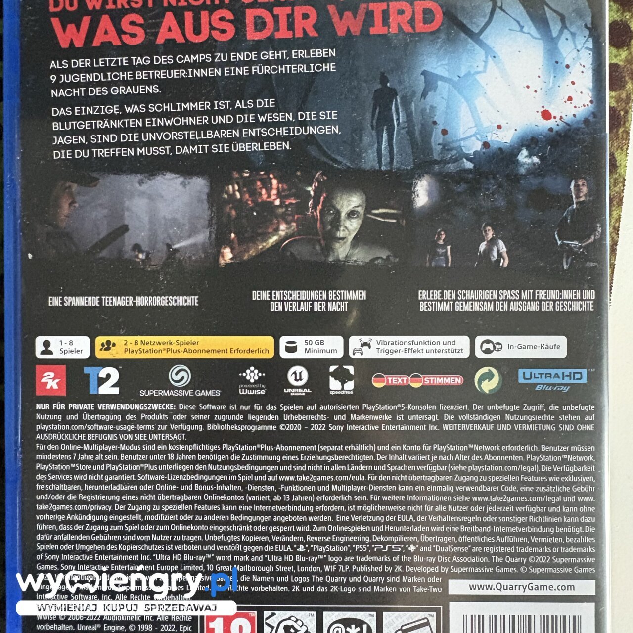 The Quarry jest utrzymaną w konwencji horroru grą przygodową z filmowym zacięciem. Produkcja została opracowana przez wyspecjalizowane w tym gatunku studio Supermassive Games, mające w swoim portfolio takie gry, jak Until Dawn czy seria The Dark Pictures Anthology. Akcja The Quarry rozgrywa się w tytułowym kamieniołomie. Ostatniej nocy obozu letniego dziewięcioro nastoletnich wychowawców urządza imprezę, chcąc uczcić zakończenie wakacyjnego wyjazdu. Zabawa zmienia się w prawdziwy koszmar, kiedy wynaturzeni, agresywni miejscowi rozpoczynają brutalne polowanie na protagonistów. Dalszy ciąg opowieści (a co za tym idzie – również jej finał) jest kształtowany przez nasze wybory. To, jakie relacje połączą bohaterów, w jaki sposób spróbują poradzić sobie ze śmiertelnym niebezpieczeństwem, a przede wszystkim to, komu uda się przeżyć, zależy od decyzji podejmowanych przez nas w toku zabawy.