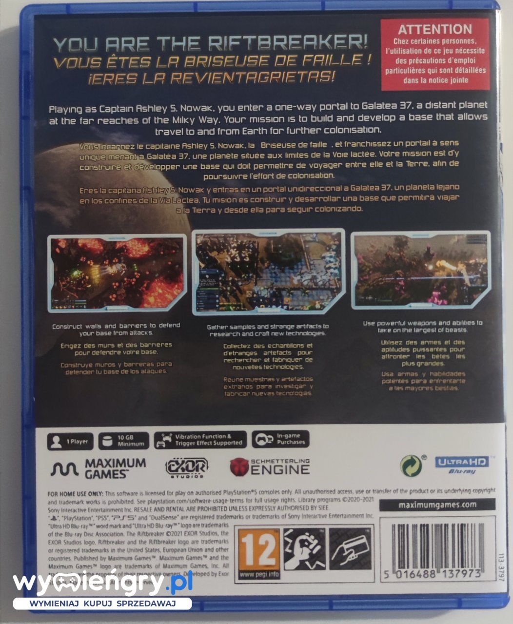 The Riftbreaker to gra akcji wzbogacona o elementy produkcji typu tower defense oraz action RPG-a. Produkcja została opracowana przez niezależny polski zespół Exor Studios, w którego portfolio można znaleźć między innymi ciepło przyjęte X-Morph: Defense. The Riftbreaker przenosi nas w daleką przyszłość, kiedy to ludzkości udało się opanować technologię teleportów, co z kolei otworzyło przed nią możliwość kolonizacji innych planet. Główną bohaterką gry jest kapitan Ashley S. Novak, będąca jednym z tak zwanych Riftbreakerów – elitarnych jednostek stanowiących połączenie naukowców i komandosów. Protagonistka udaje się w podróż w jedną stronę na znajdujący się na rubieżach Drogi Mlecznej glob Galatea 37, a jej zadanie polega na ustanowieniu ziemskiego przyczółku i otwarciu tunelu czasoprzestrzennego prowadzącego na Błękitną Planetę. Sprawę nieco ułatwia fakt, że kapitan Novak dysponuje wszechstronną mecha-zbroją, którą pieszczotliwie nazwała Mr. Riggs.