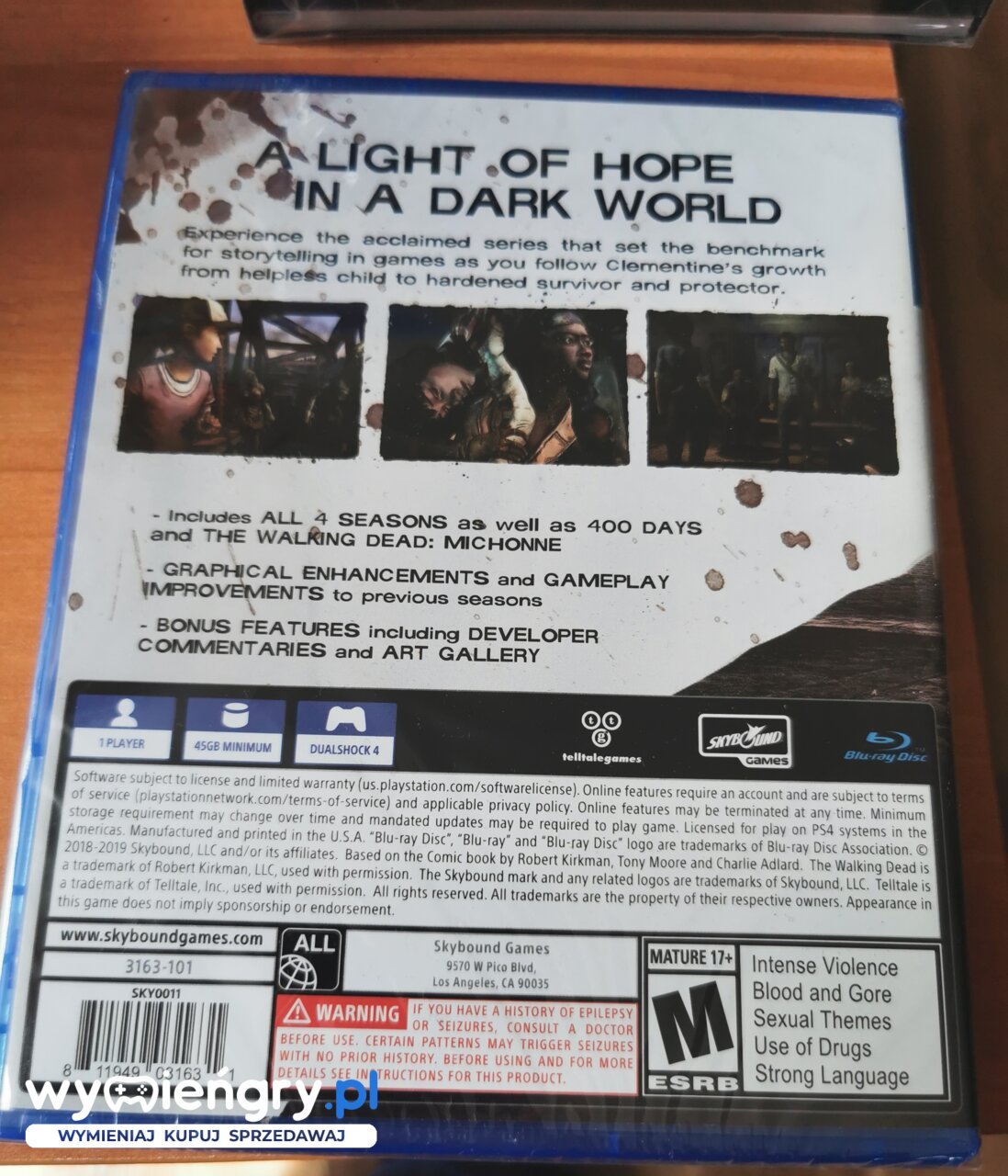 The Walking Dead: The Telltale Definitive Series na PlayStation 4 stanowi kompletne wydanie wszystkich przygodówek sygnowanych marką The Walking Dead, stworzonych przez studio Telltale. W zestawie znajdziemy wszystkie cztery sezony opowieści wraz z dodatkami 400 Days oraz The Walking Dead: Michonne, co daje razem ponad 50 godzin rozgrywki podzielonej na 23 osobne odcinki. W The Walking Dead: The Telltale Definitive Series na PS4 znajdziemy również cyfrowe bonusy, jak 10 godzin komentarzy twórców i materiałów zza kulis, szkice koncepcyjne, dokument Return of The Walking Dead oraz ponad 140 utworów muzycznych. Dzięki ulepszeniom graficznym i wiernemu odtworzeniu klasycznego menu The Walking Dead: The Telltale Definitive Series jest to najlepszy sposób, by przeżyć całą historię wędrówki Clementine i poznać jej zakończenie.