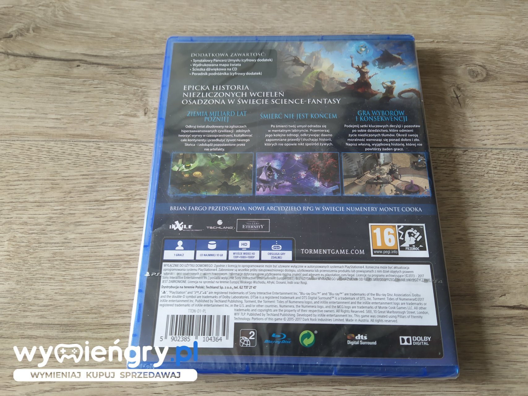 Opracowana na licencji stołowej gry fabularnej Numenera produkcja RPG, łącząca w sobie elementy fantasy i science fiction. Tytuł został stworzony przez niezależne studio inXile, znane głównie za sprawą znakomitego remake’u The Bard’s Tale oraz postapokaliptycznego Wasteland 2. Edycja Day One Edition zawiera: pudełko z grą torment Tides of Numenera, ścieżkę dźwiękową na płycie CD, cyfrowy poradnik podróżnika Torment Tides of Numenera, drukowaną mapę świata gry oraz zbroję Syntstalowy Pancerz Umysłu dla postaci w grze.