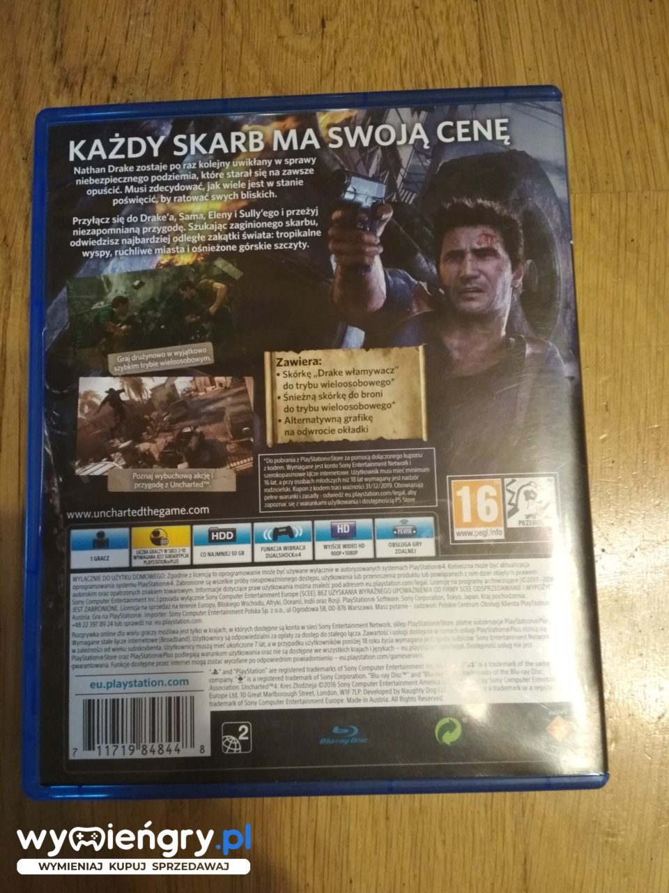 Mam na sprzedaż grę Uncharted 4 Kres Złodzieja. Stan płyty jak i pudełka jest idealny. Gra ma polski dubbing.