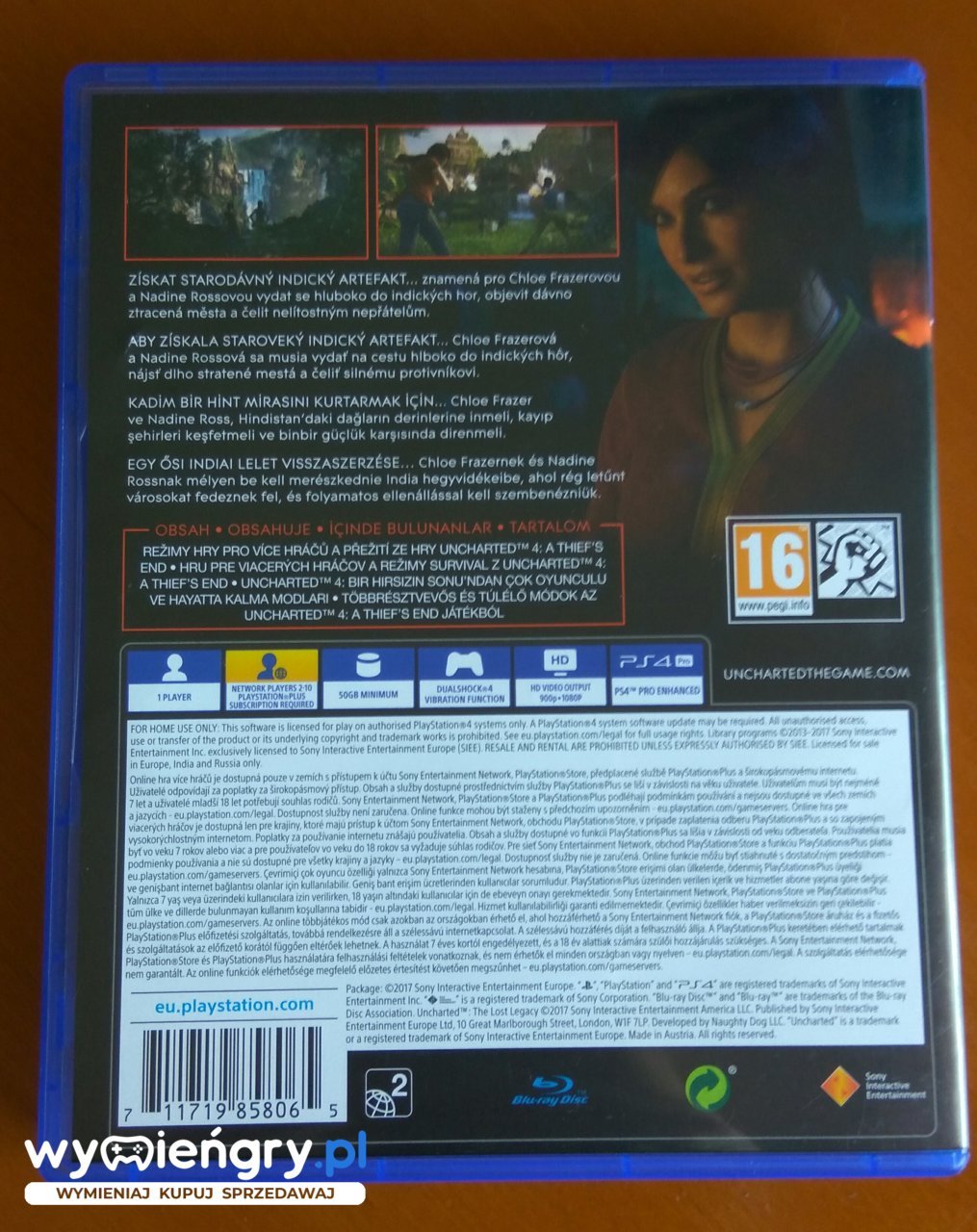 Uncharted: The Lost Legacy to wydany na platformę PS4 dodatek do gry akcji Uncharted 4: A Thief’s End z 2016 roku. Jest to rozszerzenie samodzielne, więc do działania nie wymaga posiadania podstawowej wersji gry. Aby odzyskać starożytny indyjski artefakt i uchronić go przed wpadnięciem w ręce bezwzględnego handlarza bronią, Chloe Frazer musi poprosić o pomoc znaną najemniczkę Nadine Ross znaną z Uncharted 4: Kres Złodzieja. Razem wyruszą w głąb gór Indii, nauczą się współpracować, by odkryć tajemnicę artefaktu, pokonają wielu wrogów i zapobiegną pogrążeniu się regionu w chaosie...