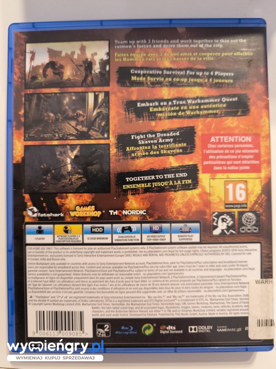 Osadzona w uniwersum Warhammera kooperacyjna gra sieciowa, za której powstanie odpowiada studio Fatshark, znane za sprawą takich gier, jak War of the Roses/Vikings czy Escape Dead Island. Warhammer: The End Times Vermintide to kooperacyjna gra sieciowa, przypominająca w swoich założeniach serię Left 4 Dead. Czteroosobowy zespół śmiałków próbuje przedrzeć się przez hordy wrogów i wykonywać kolejne misje.