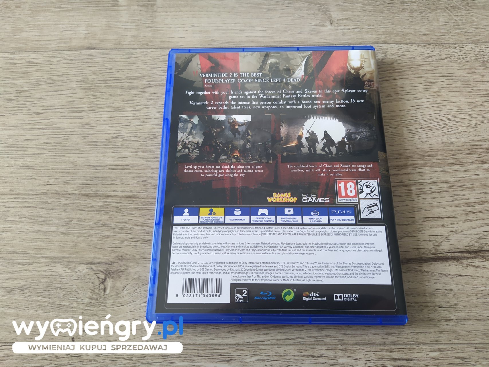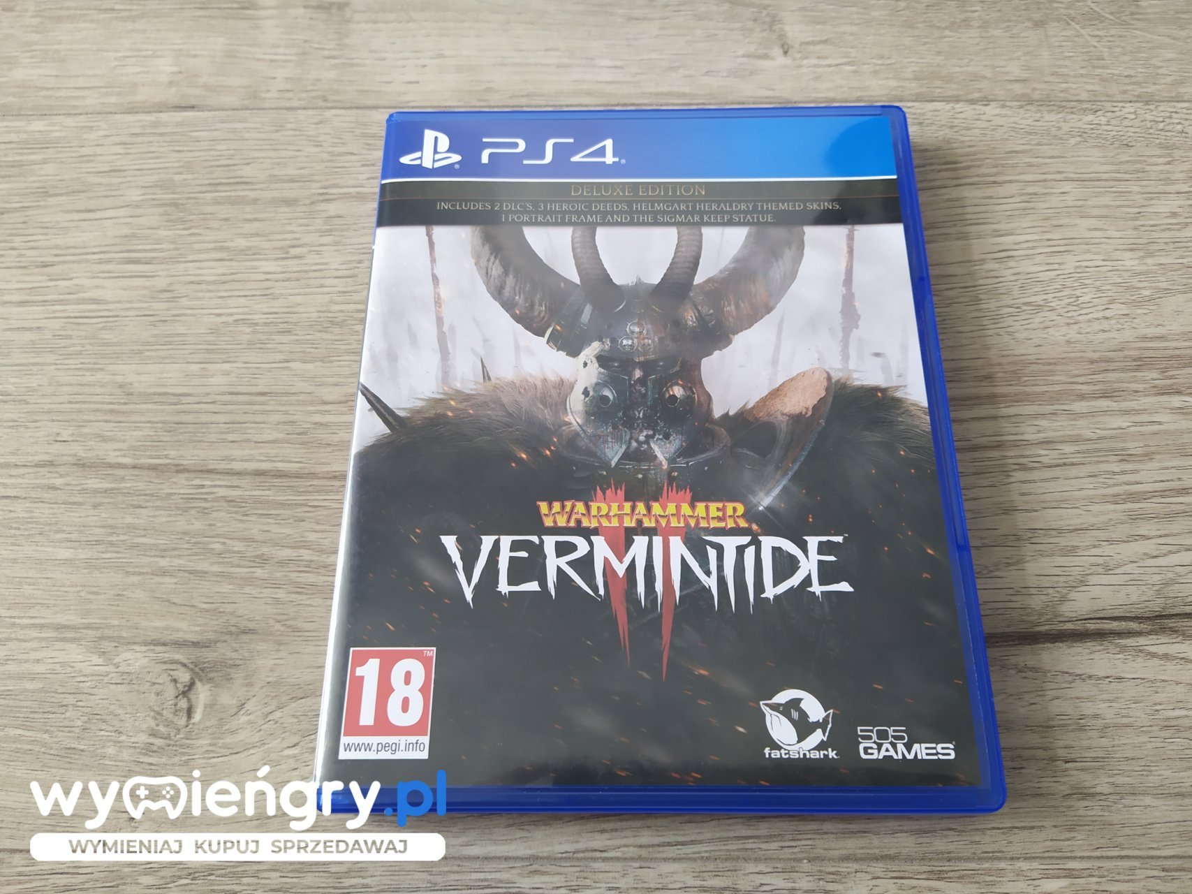 Warhammer: Vermintide 2 - Deluxe Edition powraca na PS4 w kompletnym wydaniu zawierającym wszystkie DLC. Warhammer: Vermintide 2 to kontynuacja popularnej gry Vermintide. Gracze po raz kolejny sięgną po broń, aby wspólnie ćwiartować wrogów w krwawej, rewolucyjnej grze akcji osadzonej w apokaliptycznym, spustoszonym wojną świecie Warhammer Fantasy Battles. 5 bohaterów powraca, aby stawić czoła jeszcze większemu zagrożeniu – połączonym siłom nikczemnej, siejącej spustoszenie armii Chaosu i dzikiej hordy Skavenów. Wraz z drużyną zmierzysz się z niespotykanymi dotąd wyzwaniami, usiłując przetrwać nieustające ataki. Wybierz spośród 15 ścieżek rozwoju, rozwijaj talenty, dostosuj arsenał do własnego stylu gry, walcz z przeciwnikami na niezliczonych, skrupulatnie zaprojektowanych poziomach i podejmuj nowe wyzwania dzięki nowemu systemowi bohaterskich czynów. Tylko od Ciebie i Twoich sojuszników zależy, czy osiągniecie sromotną porażkę, czy zwyciężycie. Jeśli polegniecie, polegnie całe Imperium.