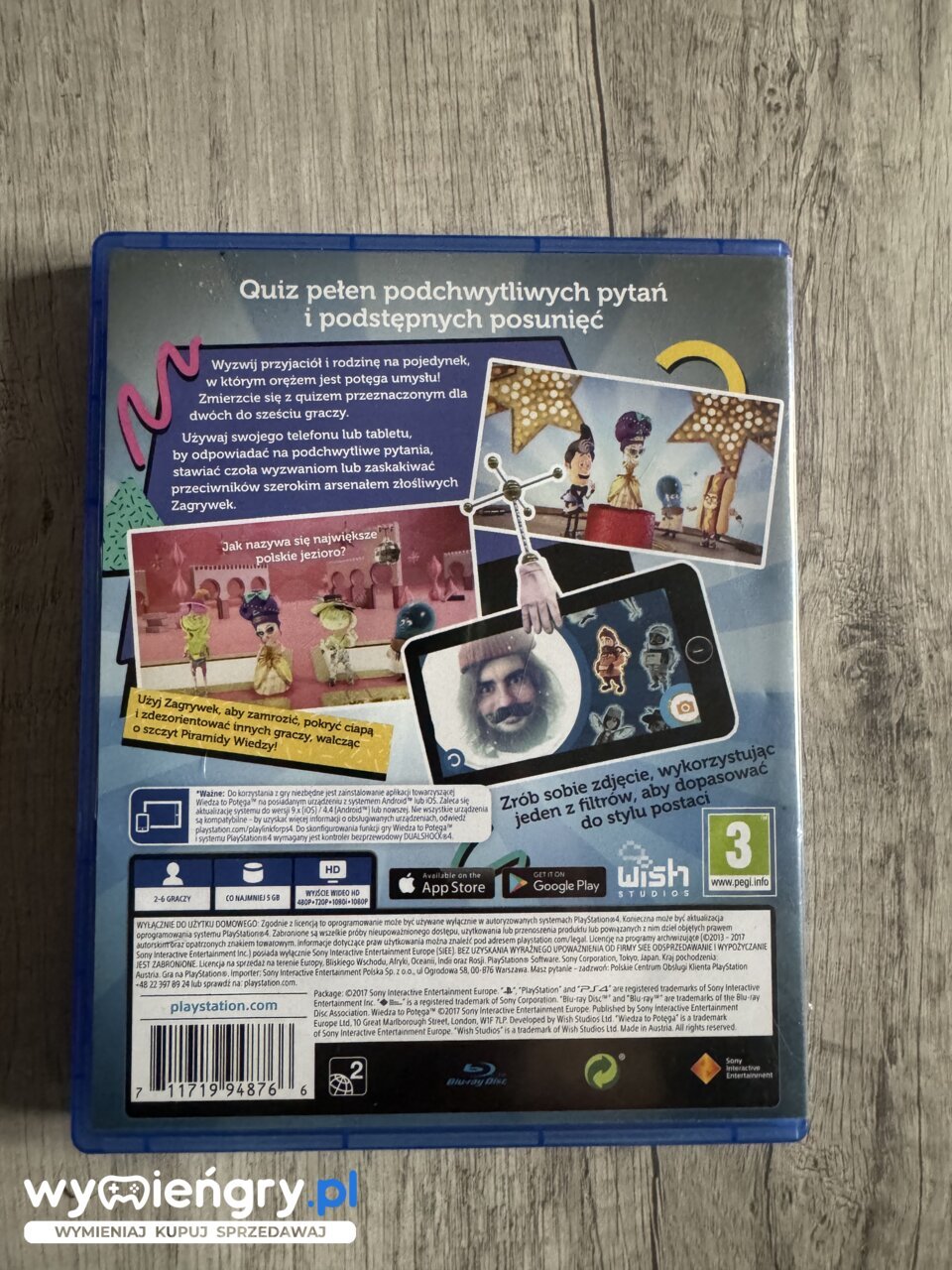 Gra towarzyska, opracowana przez jeden z wewnętrznych zespołów firmy Sony, będąca swego rodzaju duchowym spadkobiercą serii Buzz!, której kolejne odsłony ukazywały się na konsolach PlayStation 2, PlayStation Portable i PlayStation 3. Knowledge is Power na konsoli PlayStation 4 to produkcja towarzyska, w której samotnie lub wraz z innymi osobami uczestniczymy w różnego rodzaju quizach wiedzy.
