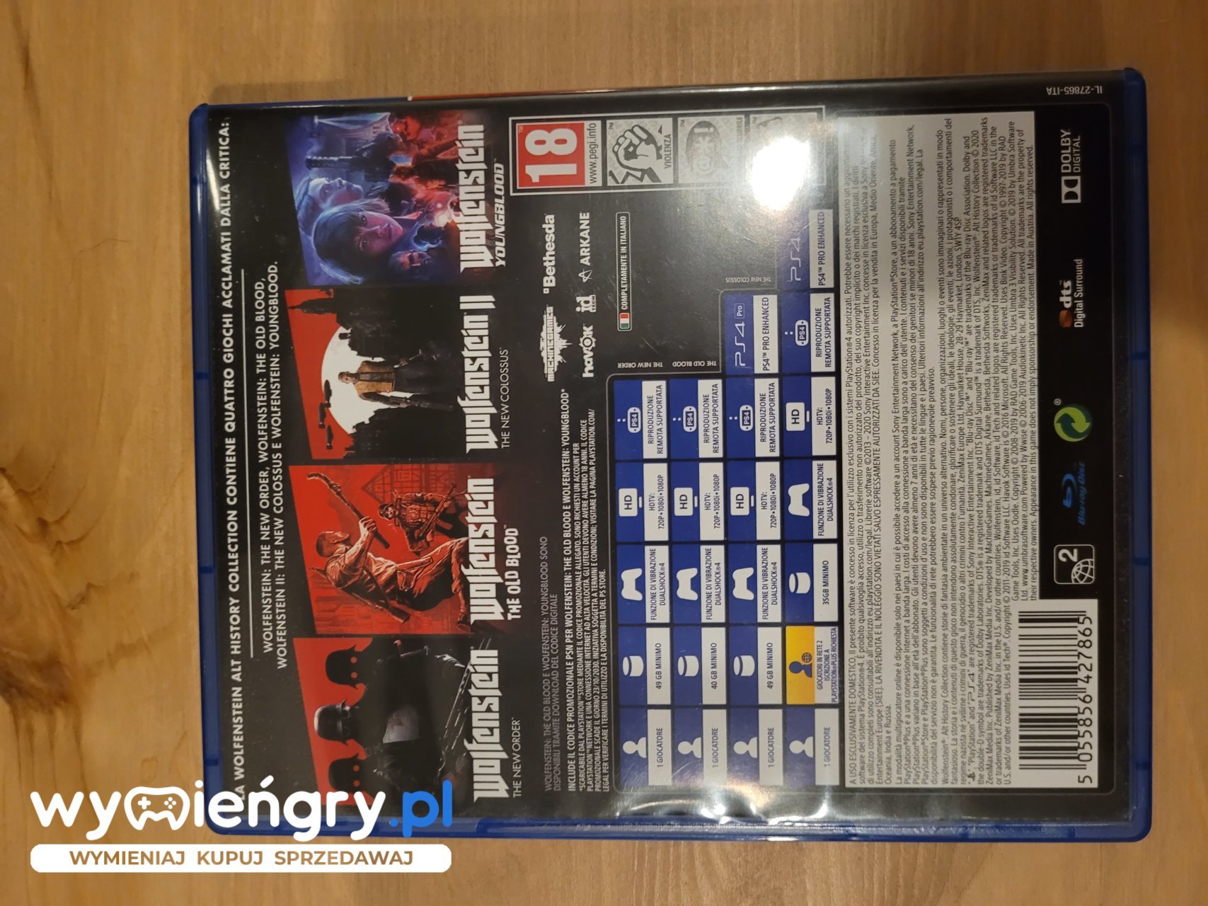 Opakowanie w wydaniu włoskim-jak na zdjęciach. Kody wykorzystane, więc w pudełku znajdują się gry The New Order i The New Colossus. The New Order jest w języku polskim, The New Colossus - w angielskim (być może da się to zmienić w ustawieniach-mi się nie udało).