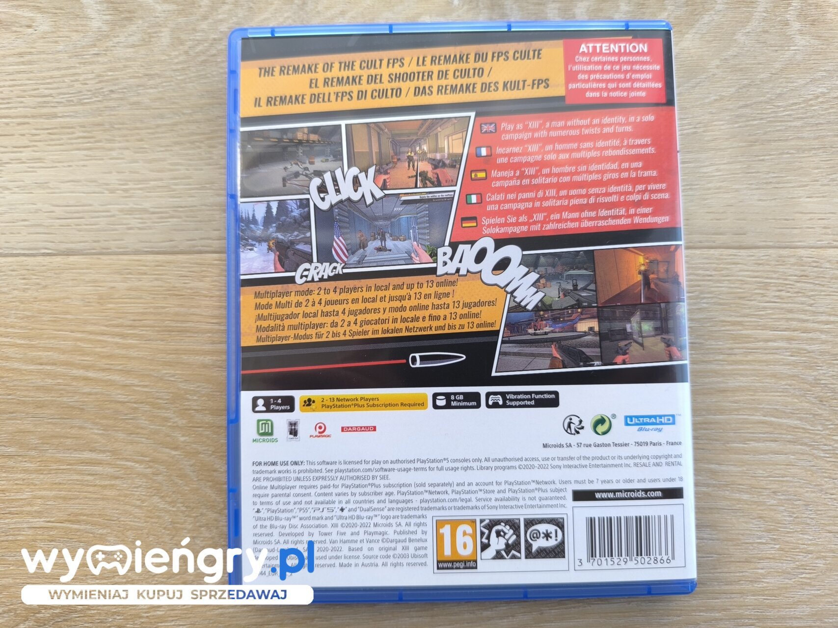 XIII to Remake kultowej gry akcji z perspektywy pierwszej osoby, wydanej po raz pierwszy w 2003 roku. Jesteś „XIII”, mężczyzną bez tożsamości, i musisz nawigować pomiędzy licznymi i zaskakującymi zwrotami akcji w kampanii dla jednego gracza. Zainspirowana komiksem o tym samym tytule, gra zawiera unikalny cel-shadingowy styl graficzny, który w tej wersji całkowicie odświeżono. XIII umożliwia również brutalne starcia w trybie wieloosobowym. Kraj znajduje się jeszcze w szoku po zabójstwie prezydenta Sheridana. Budzisz się na bezludnej plaży na wschodnim wybrzeżu i stwierdzasz, że cię zraniono i że niczego nie pamiętasz. Jedyne wskazówki dotyczące twojej tożsamości, to numer XIII wytatuowany przy obojczyku i klucz do szafki. Mimo że zawodzi cię pamięć, stwierdzasz u siebie odruchy doskonale wyszkolonego, zawodowego wojownika. W poszukiwaniu swojej przeszłości stwierdzasz, że odegrałeś pewną rolę w zabójstwie prezydenta Stanów Zjednoczonych i odkrywasz najbardziej przerażający spisek, jaki kiedykolwiek miał miejsce w historii tego kraju.